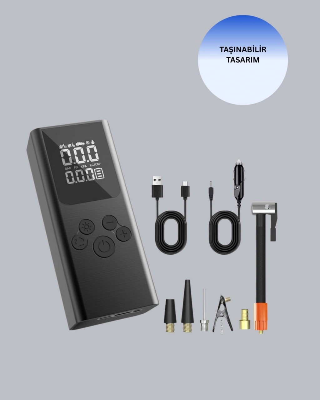 Taşınabilir dijital lastik pompası, seyahatlerde ve günlük kullanımda pratik bir hava şişirme çözümü sunar. Araba, bisiklet, motosiklet ve spor topları ile uyumludur. Çoklu valf adaptörleri ile geniş kullanım alanı sağlar.LCD ekran üzerinden BAR cinsinden basınç değerleri anlık olarak görüntülenebilir. Otomatik kapanma özelliği sayesinde istenen basınç seviyesine ulaşıldığında güvenli şekilde durur.USB şarjlı kompakt tasarımı, ürünü her yerde kullanmaya olanak tanır. Araç içinde, evde veya dış mekânda rahatlıkla kullanılabilir.Entegre LED ışık, gece görüşünü artırarak acil durumlarda ekstra kolaylık sağlar. Fonksiyonel ve taşınabilir bir hava pompası arayanlar için idealdir.