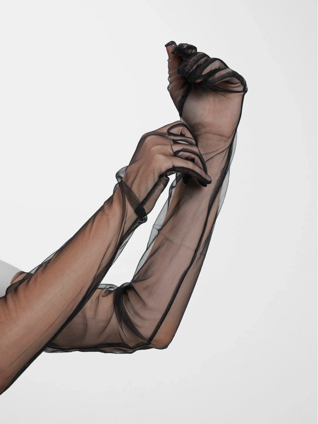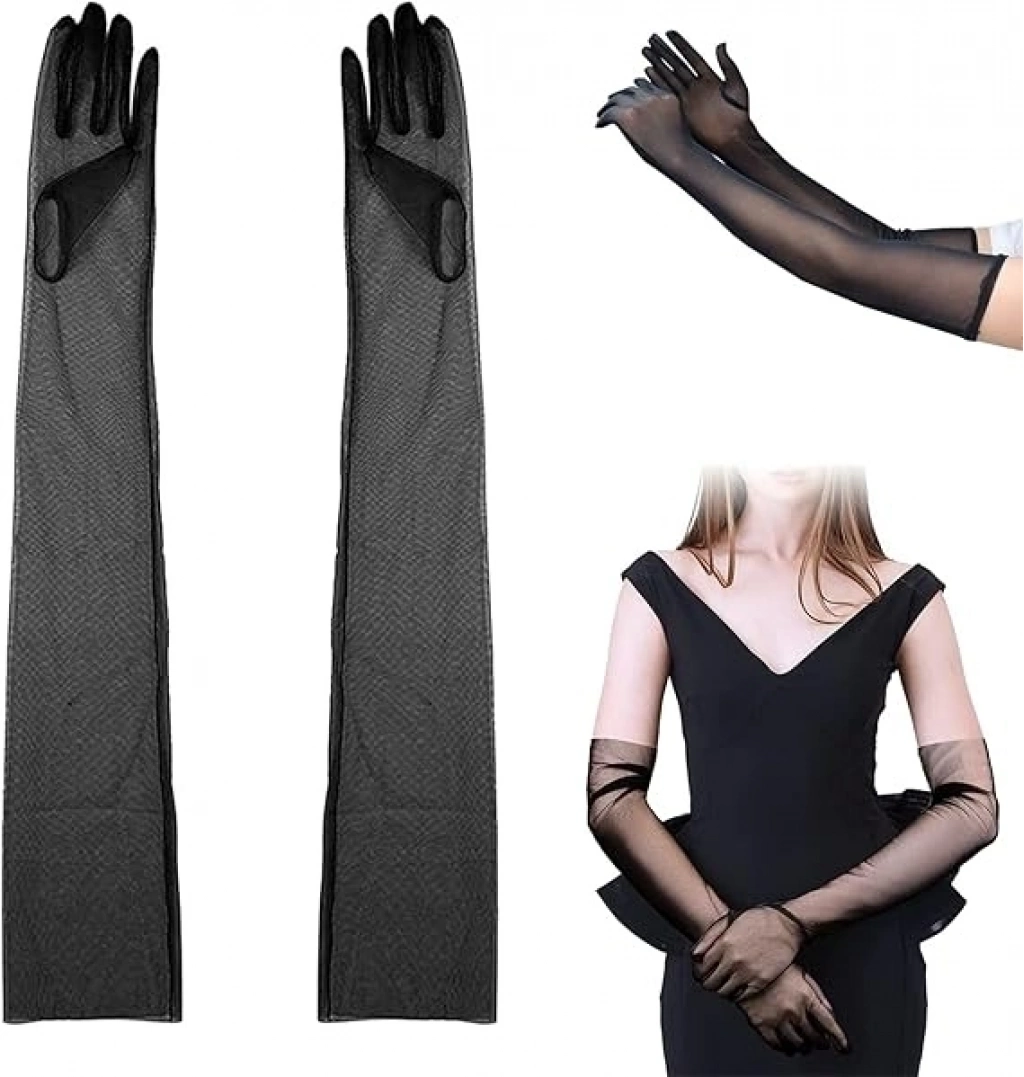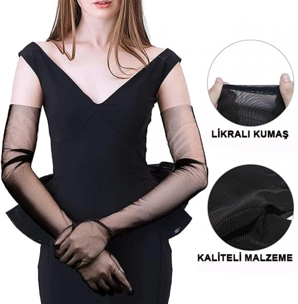 Uzun Boy Likralı Siyah Renk Yetişkin Mega Tül Eldiven 53 cm