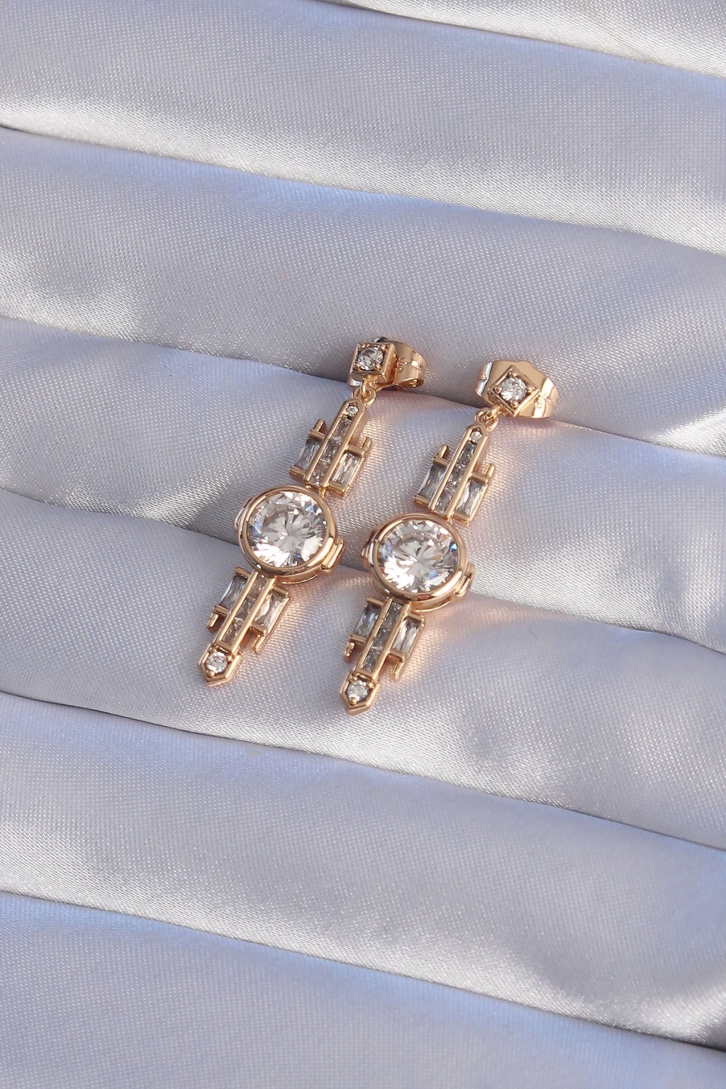 ® XUPİNG Rose Renk Zirkon Taşlı Geometrik Sallantılı Küpe
