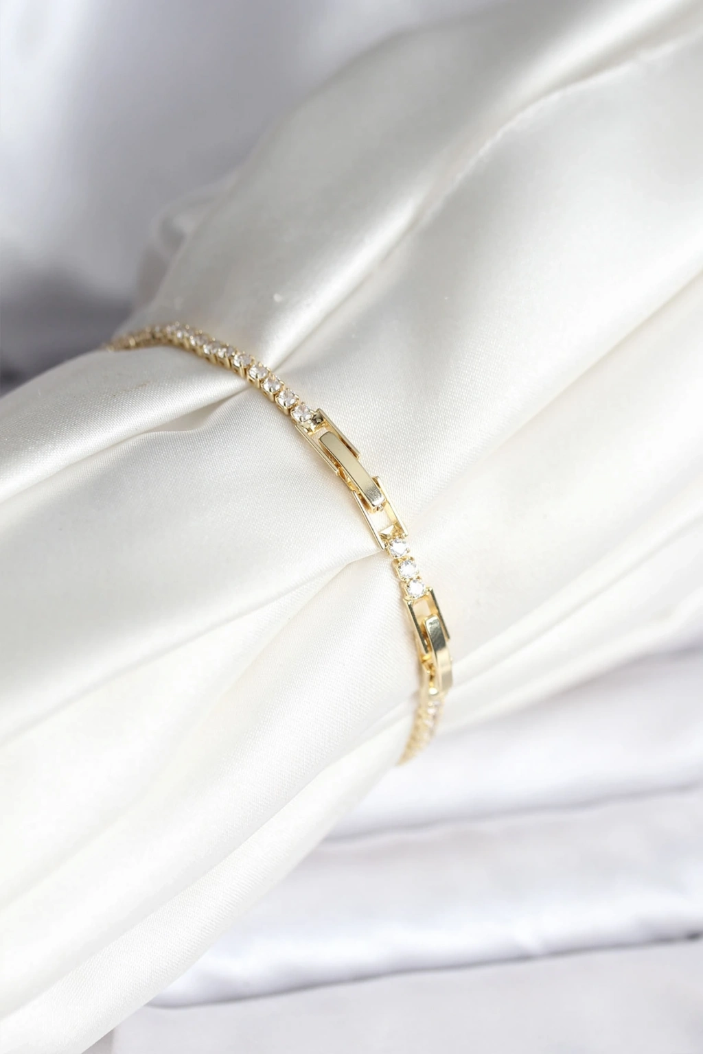 ® Yıldız Model Zirkon Taşlı Gold Renk Pirinç Su Yolu Kadın Bileklik