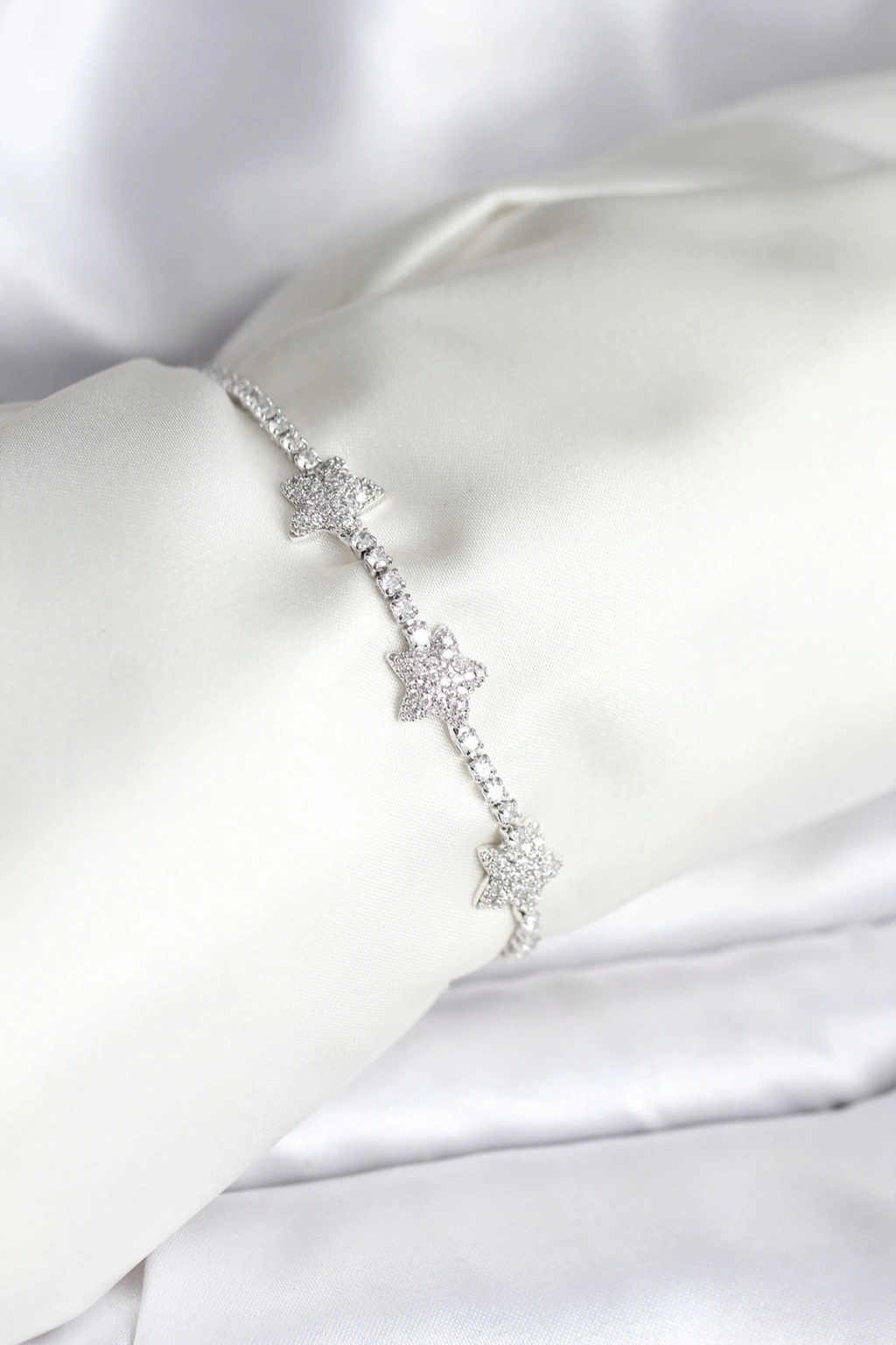 ® Yıldız Model Zirkon Taşlı Gümüş Renk Pirinç Su Yolu Kadın Bileklik