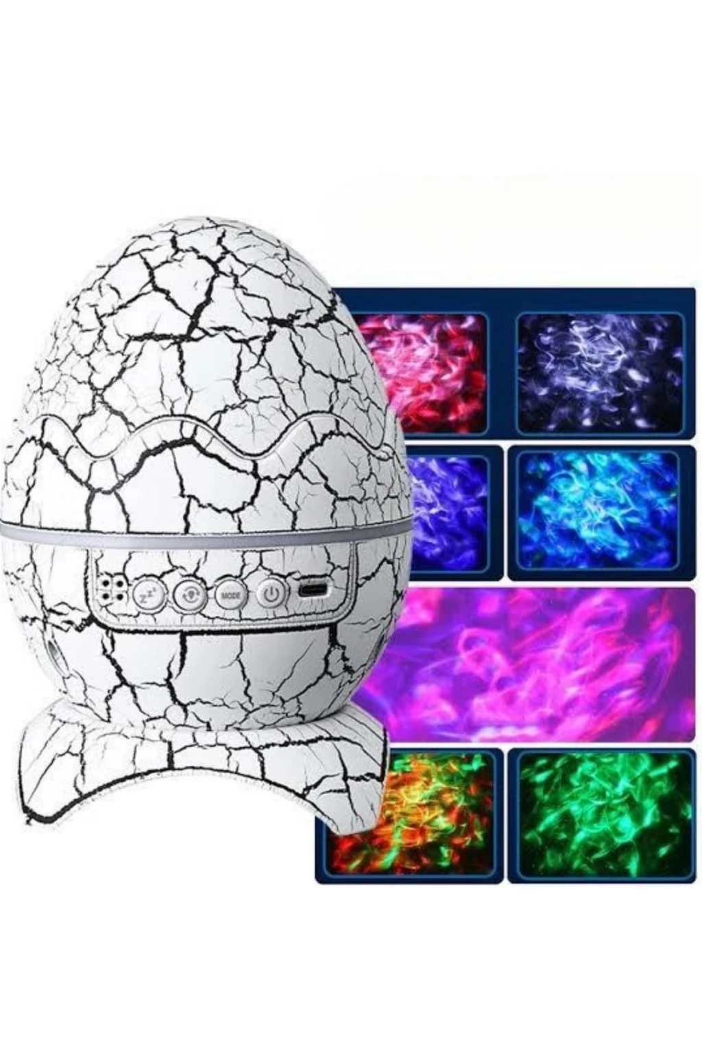 Evdeki her ortamı büyülü bir atmosfere dönüştürmek artık çok kolay! Dinazor Yumurtası tasarımı, odanızı kocaman bir uzay alanına çevirebilmenizi sağlar. Yıldızlarla dolu bir gökyüzüne bakarak, hayal gücünüzü özgür bırakabilirsiniz. Ürünün şık ve ilgi çekici tasarımı, sadece işlevsel değil, aynı zamanda evinize görsel olarak da zarif bir dokunuş ekler. Sadece bir düğmeye basarak, dönen projektörün sağladığı 7 farklı sis türü ve farklı hız ve parlaklık ayarlarıyla ışık gösterisinin keyfini çıkarabilirsiniz.