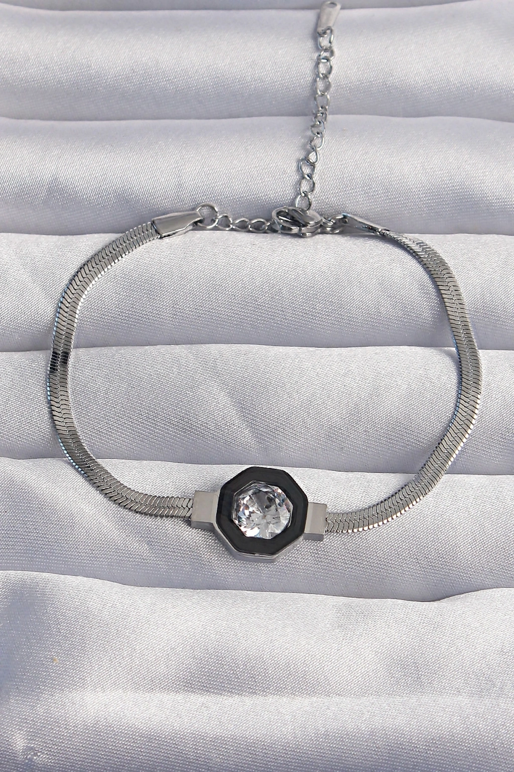 ® 316L Çelik Gümüş Renk Zirkon Taşlı Mineli İtalyan Zincir Serenay Bileklik