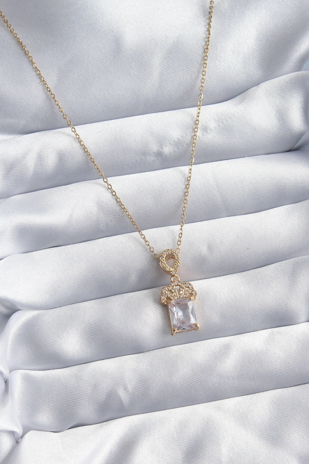 ® 316L Çelik Zincir Gold Renk Zirkon Taşlı Taç Model Kadın Kolye