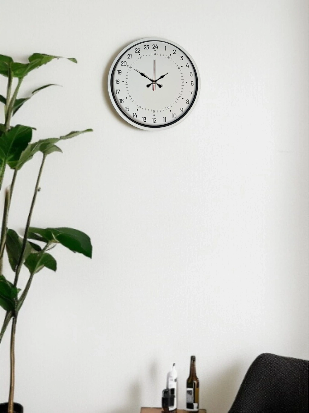 Standart 12 saatlik kadranlardan farklı olarak 24 saat göstergeli özel tasarımı ile hazırlanan bu duvar saati, günün tamamını tek bir kadran üzerinden takip etmenizi sağlar. Bu özelliği sayesinde klasik duvar saatlerinden ayrılır ve daha fonksiyonel bir kullanım sunar.