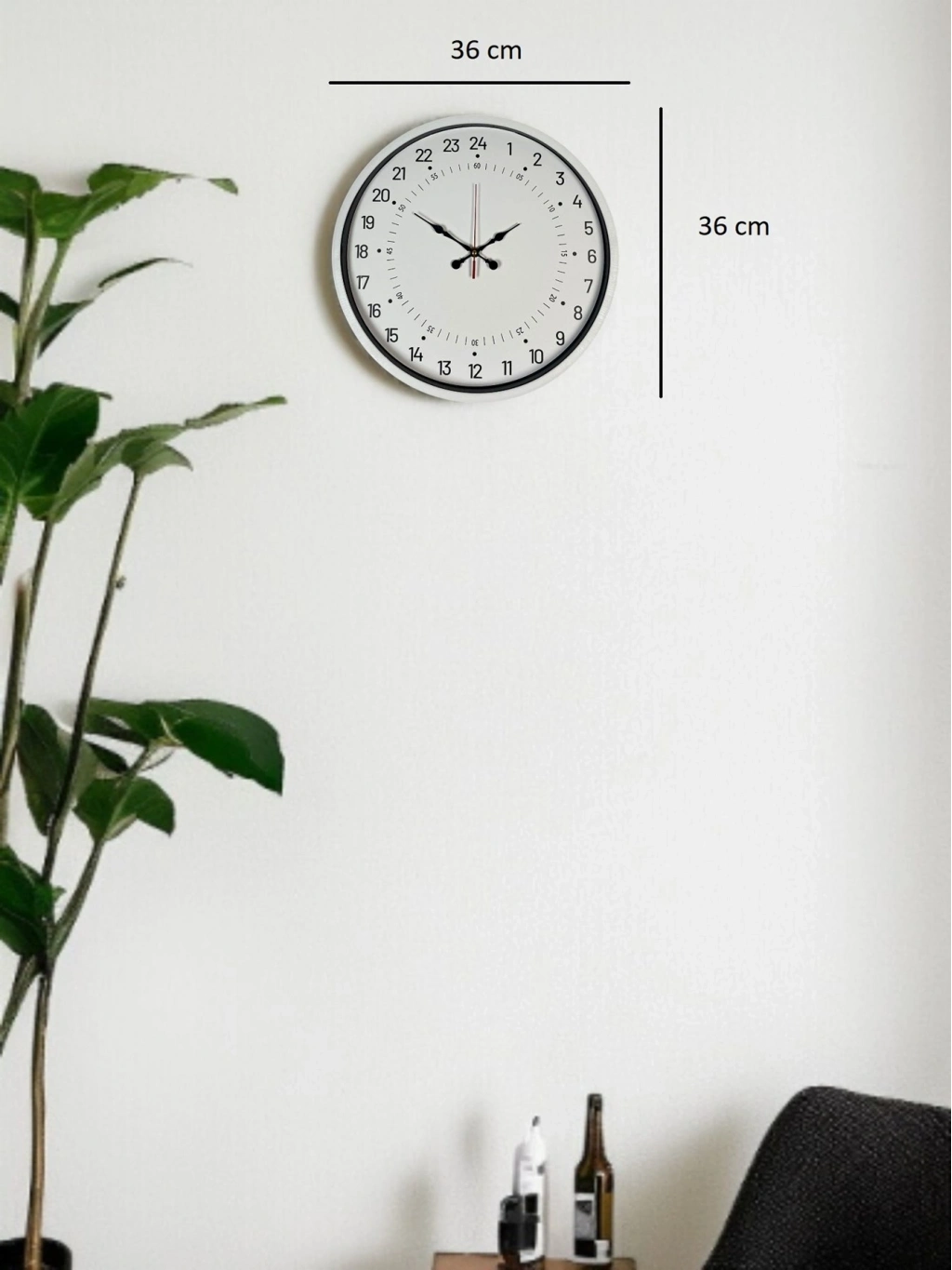 ® 36 Cm Beyaz 24 Saat Göstergeli Özel Tasarım Duvar Saati