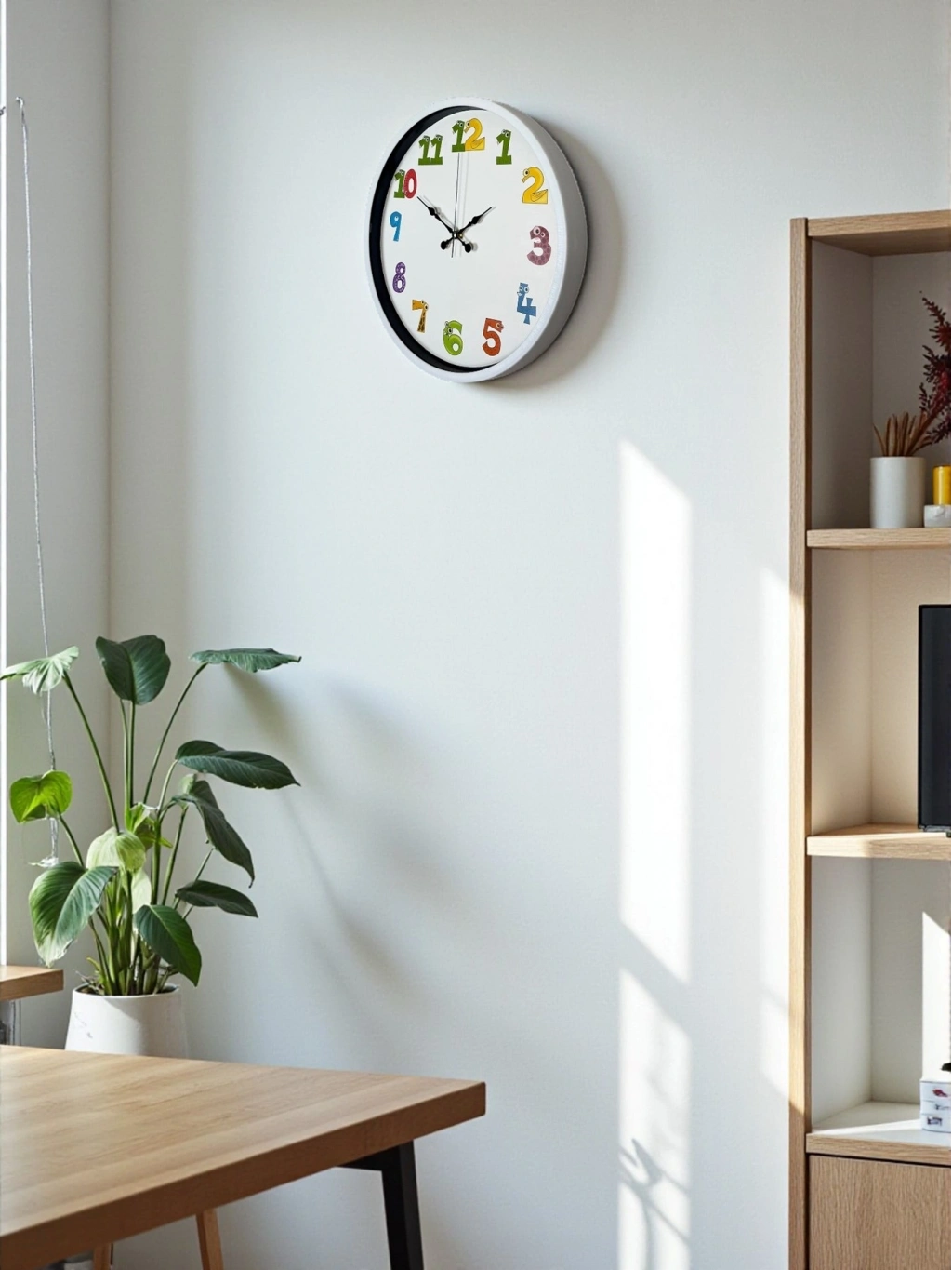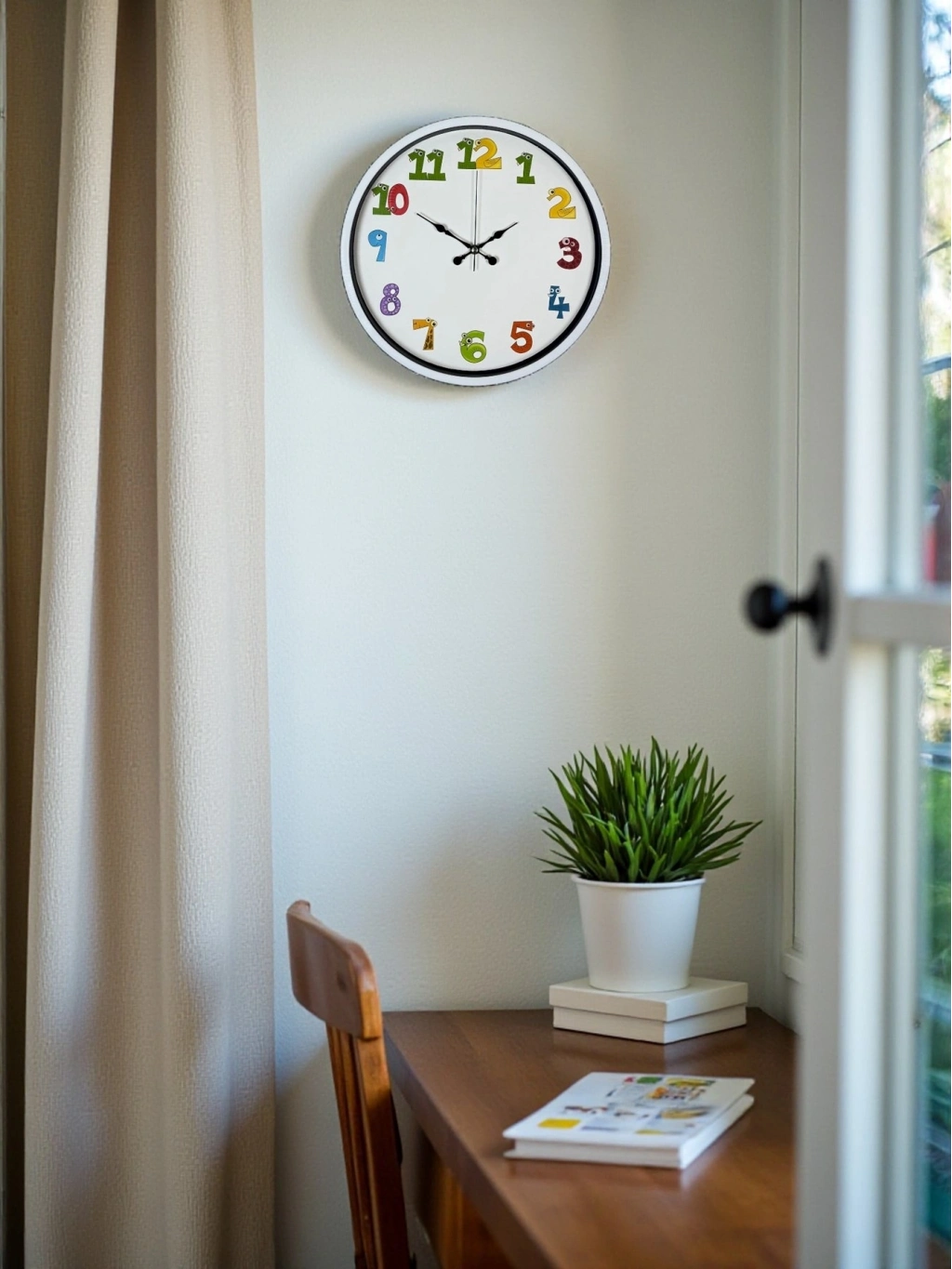 Hayvan figürlü ve renkli rakam tasarımıyla hazırlanan bu 36 cm çocuk odası duvar saati, çocukların dikkatini çeken neşeli bir görünüme sahiptir. Eğlenceli rakamlar sayesinde çocukların saat öğrenme sürecini desteklerken, odalarına canlı ve keyifli bir atmosfer kazandırır.