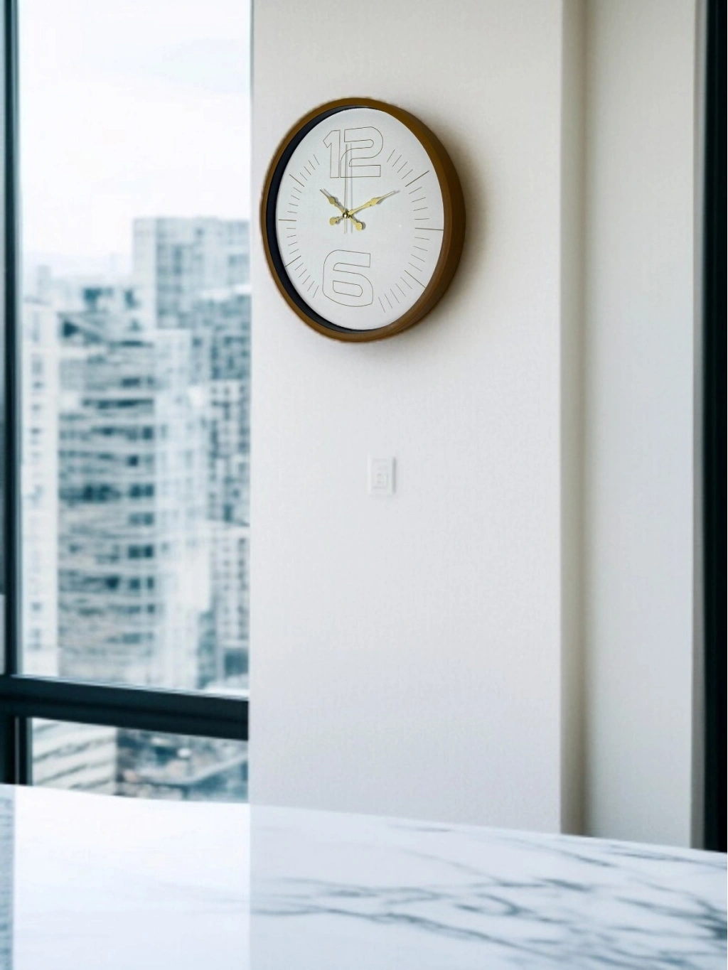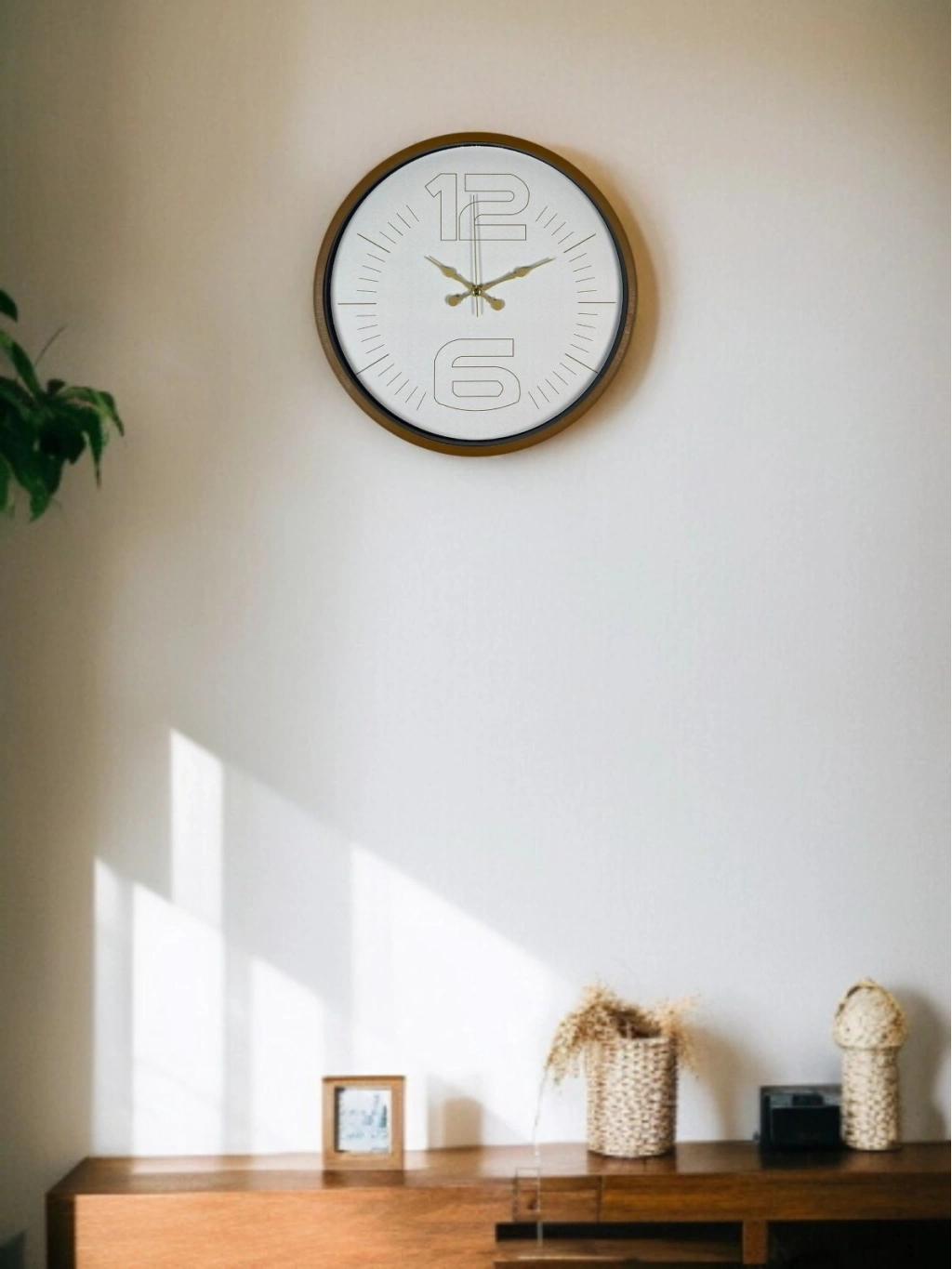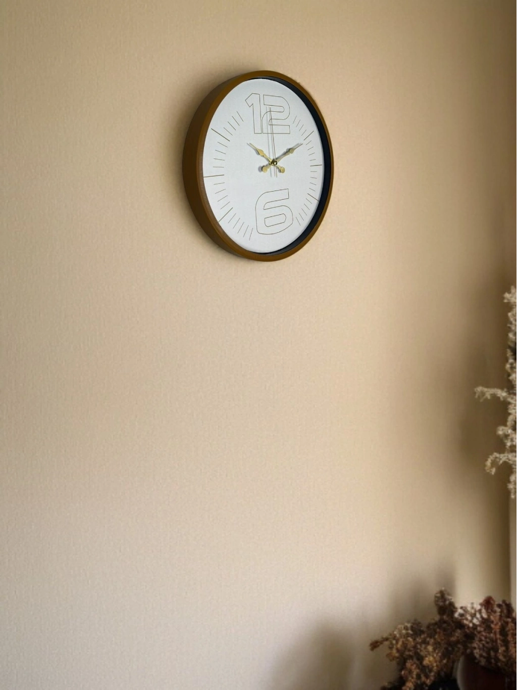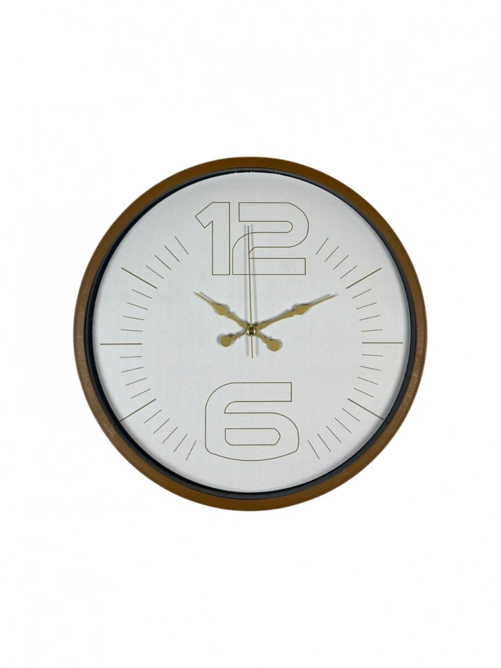 Kahverengi çerçevesi, açık renk kadranı ve büyük 12 – 6 rakamlı modern tasarımıyla bu 36 cm duvar saati; bulunduğu ortama ferah, şık ve dengeli bir görünüm kazandırır. Minimal çizgilerle tasarlanmış kadranı sayesinde gözü yormaz, büyük rakamlarıyla uzaktan bile rahatlıkla okunur.