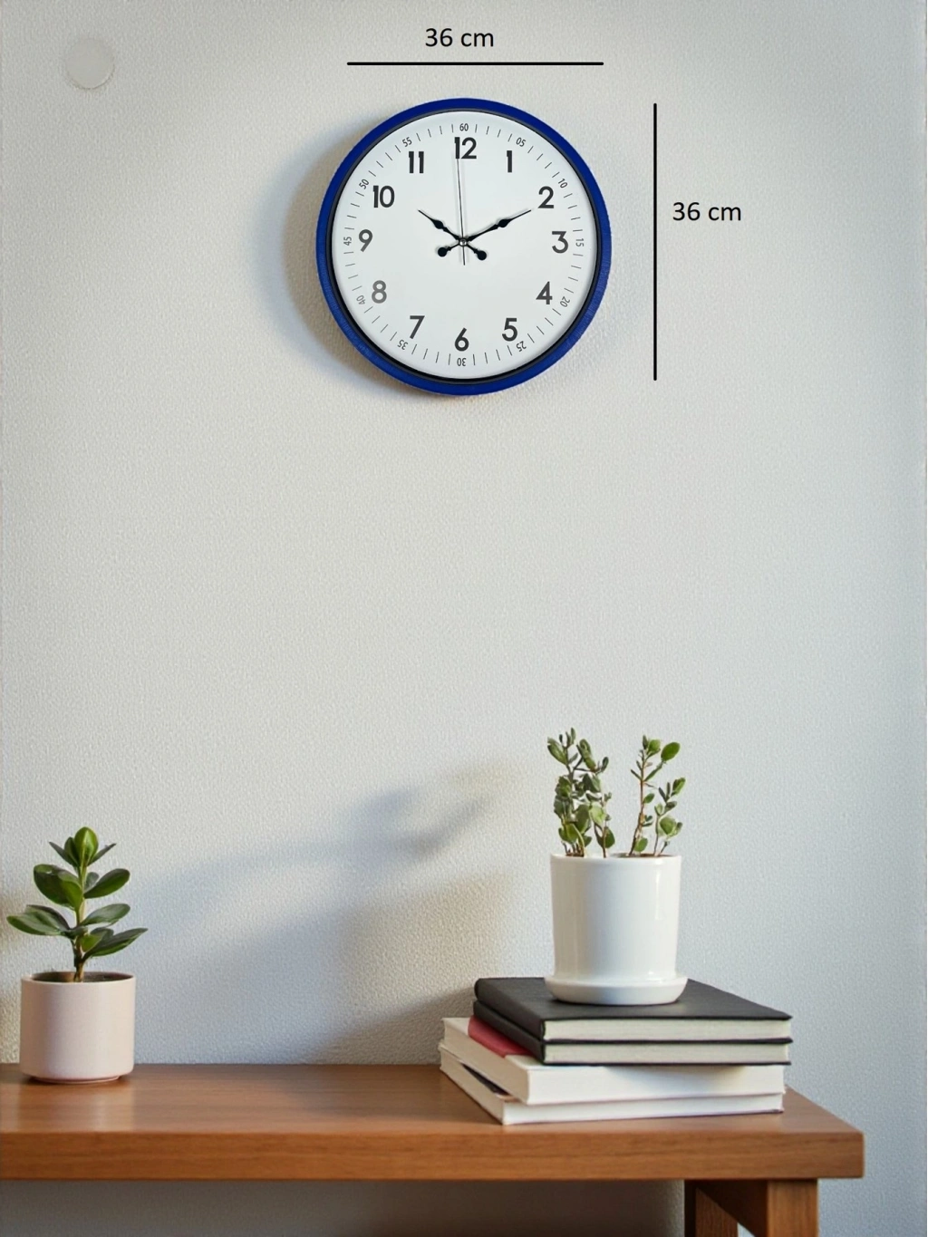 Lacivert çerçevesi ve beyaz zeminli kadranıyla tasarlanan bu 36 cm duvar saati, sade şıklığı modern çizgilerle buluşturur. Net ve büyük rakamları sayesinde zamanı uzaktan dahi kolayca okumaya imkân tanır. Günlük kullanım için pratik, dekoratif açıdan ise her ortama uyum sağlayan zamansız bir tasarıma sahiptir.
