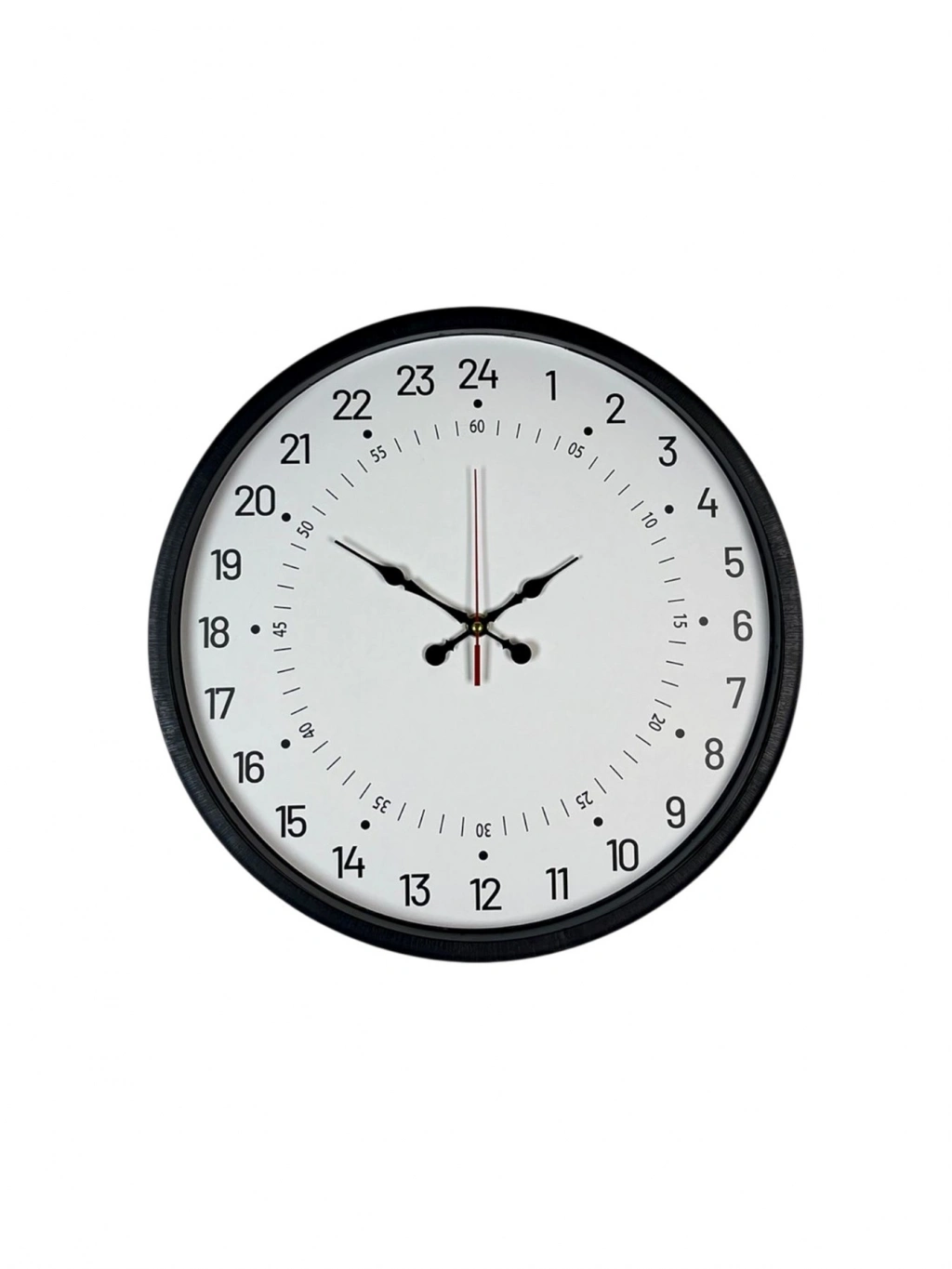 Standart 12 saatlik sistemden farklı olarak 24 saatlik zaman düzenine göre tasarlanan bu 36 cm siyah duvar saati, zamanı tek turda ve daha net bir şekilde takip etme imkânı sunar. Beyaz kadranı üzerinde yer alan 1–24 arası rakamlar sayesinde günün tüm saatleri kolayca ayırt edilir.
