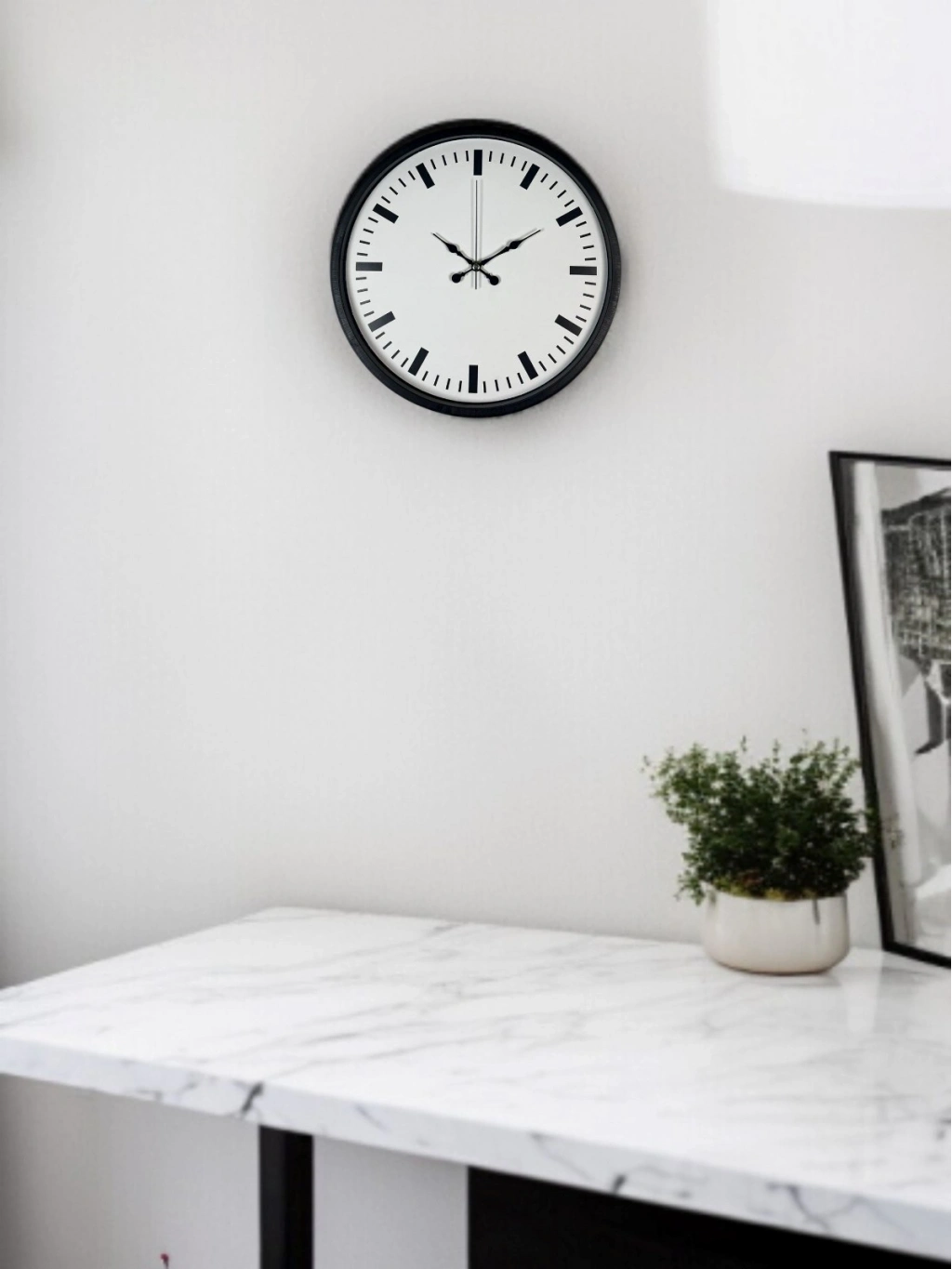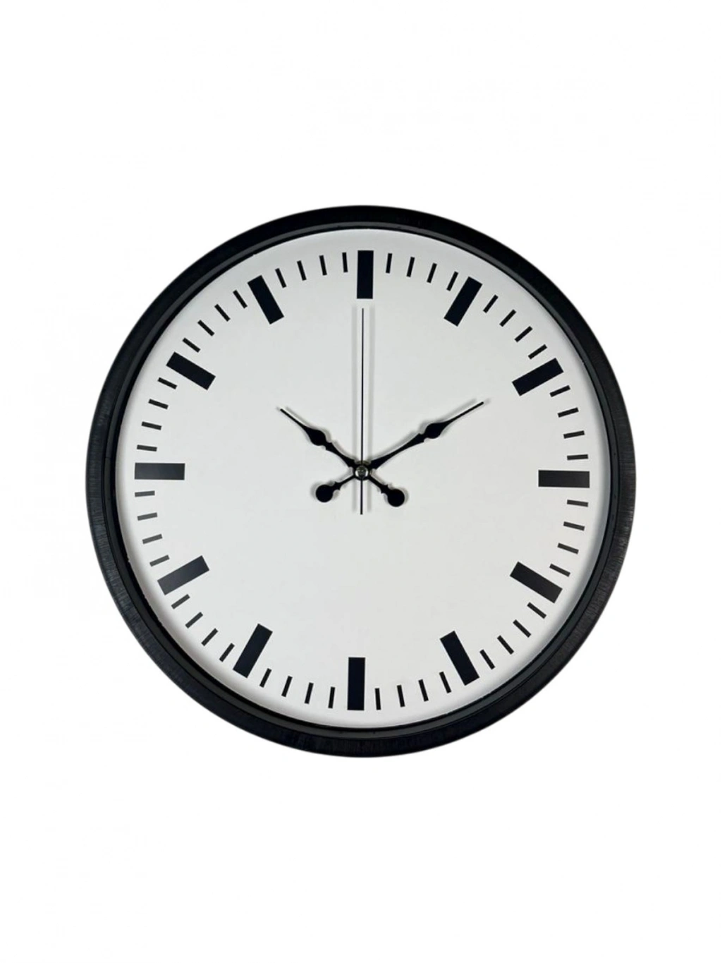 Beyaz kadranı ve siyah çizgi indeksleriyle güçlü bir kontrast sunan bu 36 cm duvar saati, sade ama dikkat çekici tasarımıyla modern yaşam alanlarına şıklık katar. Rakam kullanılmadan tasarlanan kadranı sayesinde minimalist bir duruş sergilerken, kalın saat işaretleriyle yüksek okunurluk sağlar.