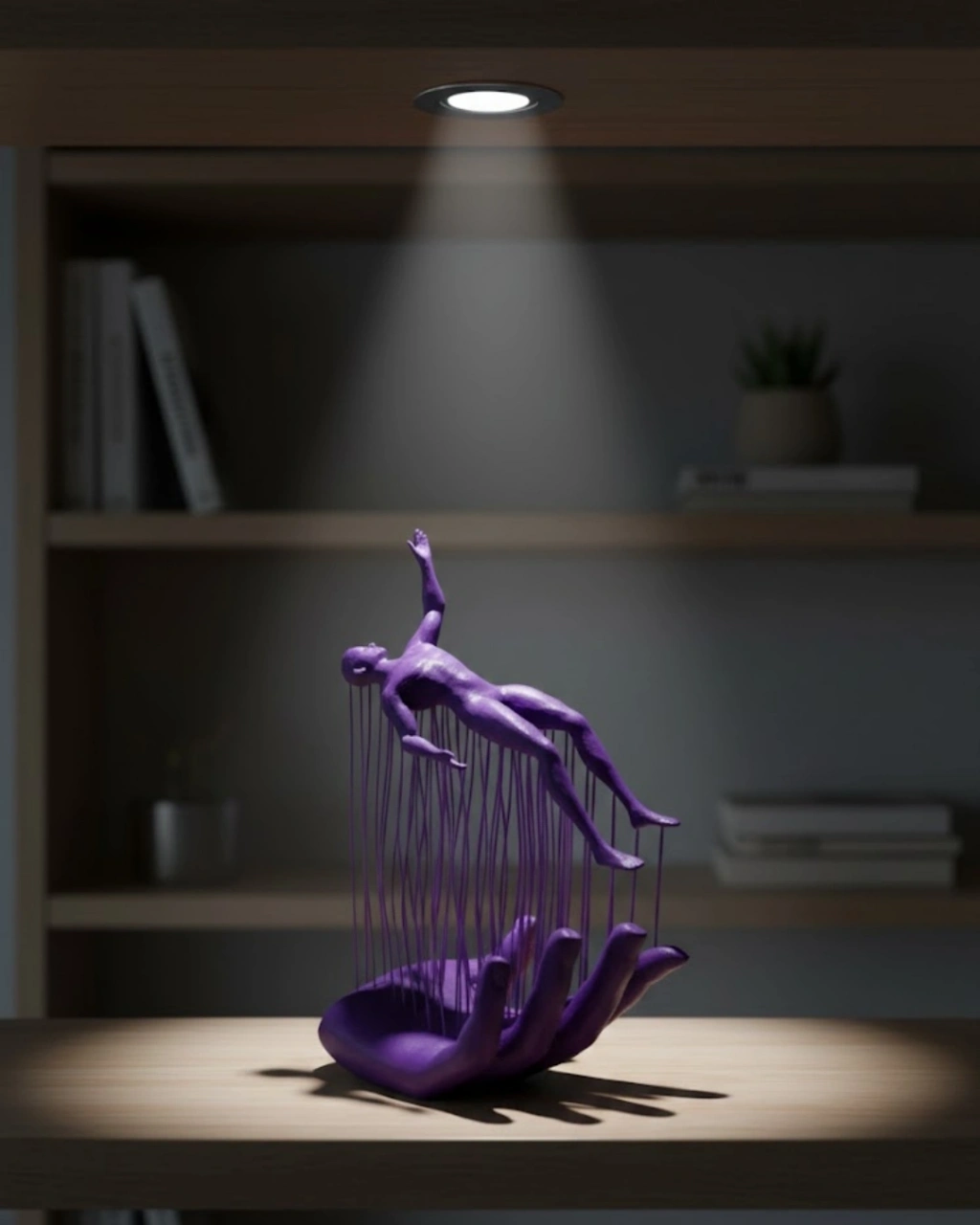 ® 3D El Üzerinde İnsan Figürü Mor Soyut Tasarım Dekor Biblo