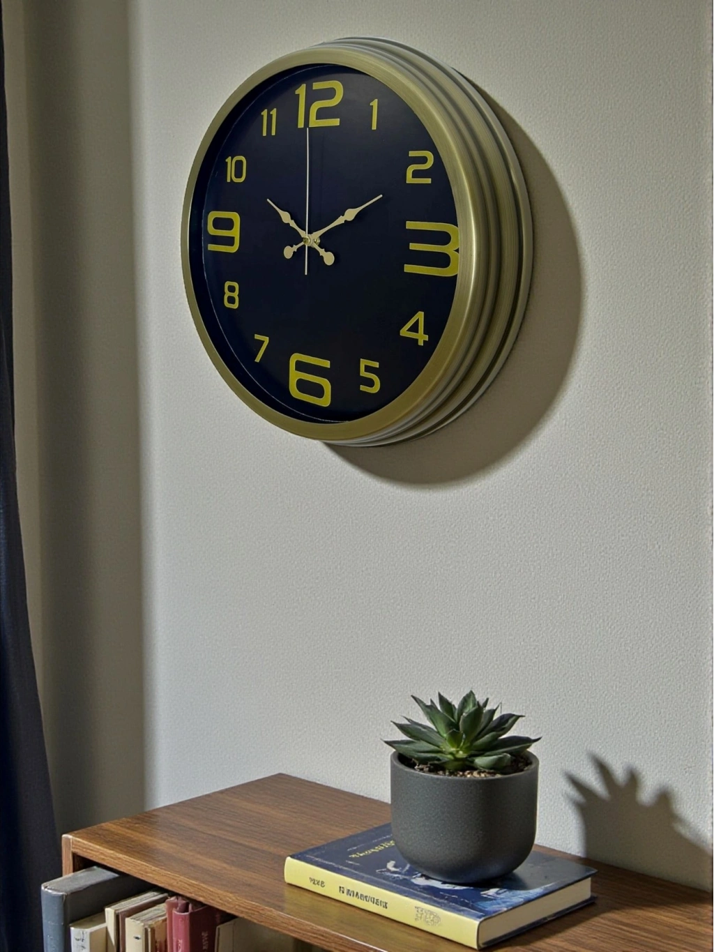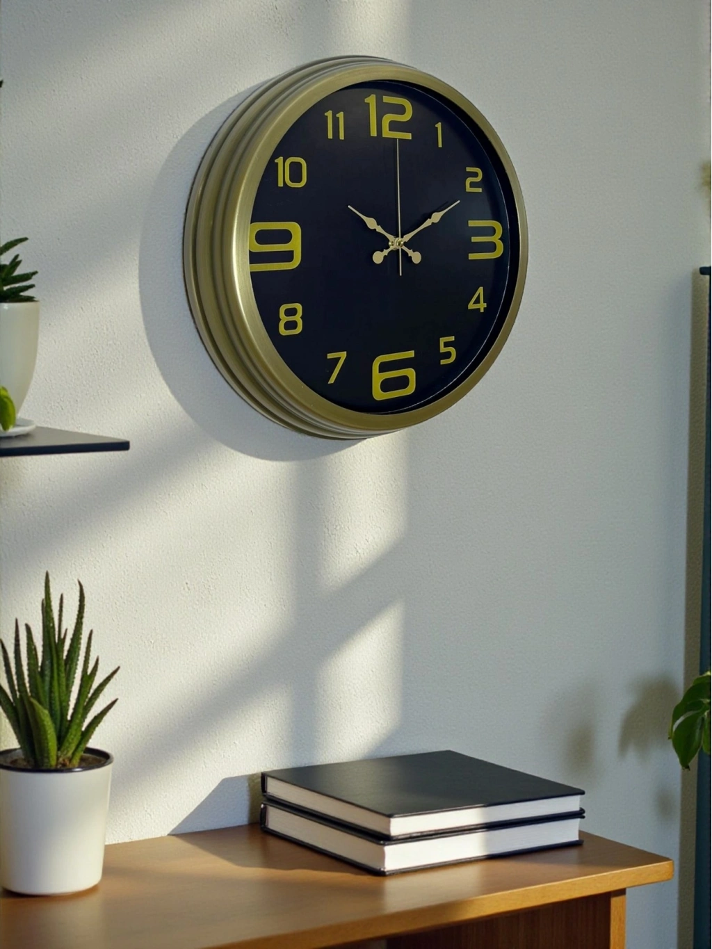 Şıklığı ve zamansız tasarımı bir arada sunan bu 40 cm eskitme metal duvar saati, siyah kadranı ve gold renkli rakamlarıyla bulunduğu ortama güçlü ve sofistike bir hava katar.