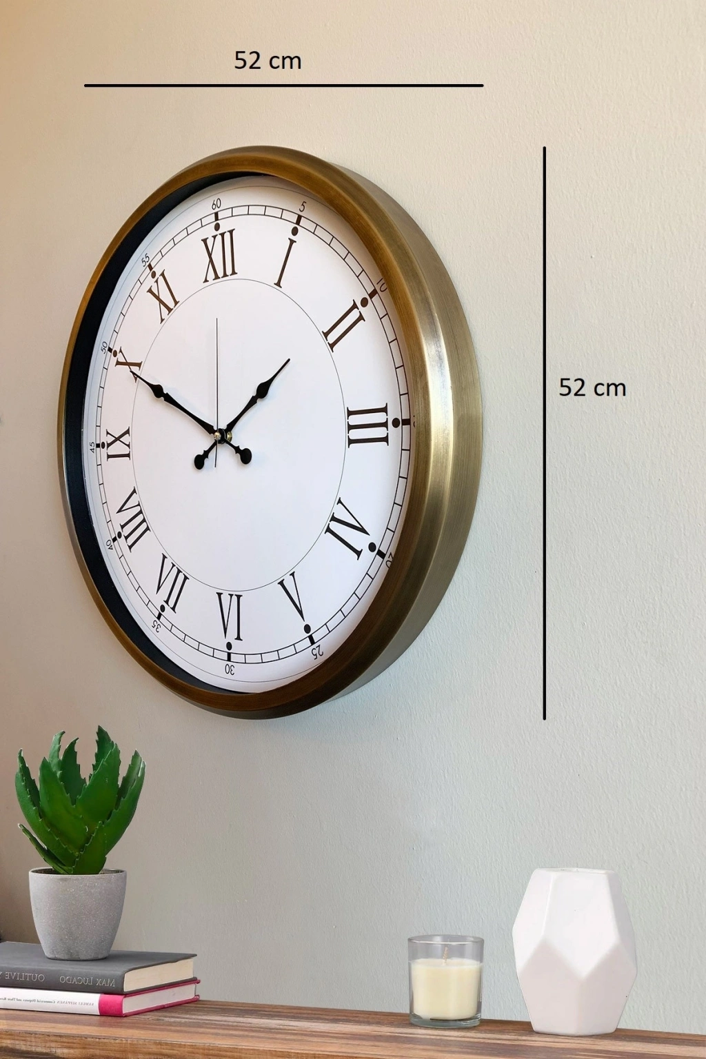 Şık ve modern tasarımıyla dikkat çeken 52 cm eskitme duvar saatimiz, sessiz akar saniye mekanizmasıyla konforlu bir kullanım sunar. Gerçek cam koruma paneli sayesinde uzun ömürlü ve dayanıklıdır. Estetik görünümüyle hem ev hem de iş yerleri için ideal bir dekoratif üründür.