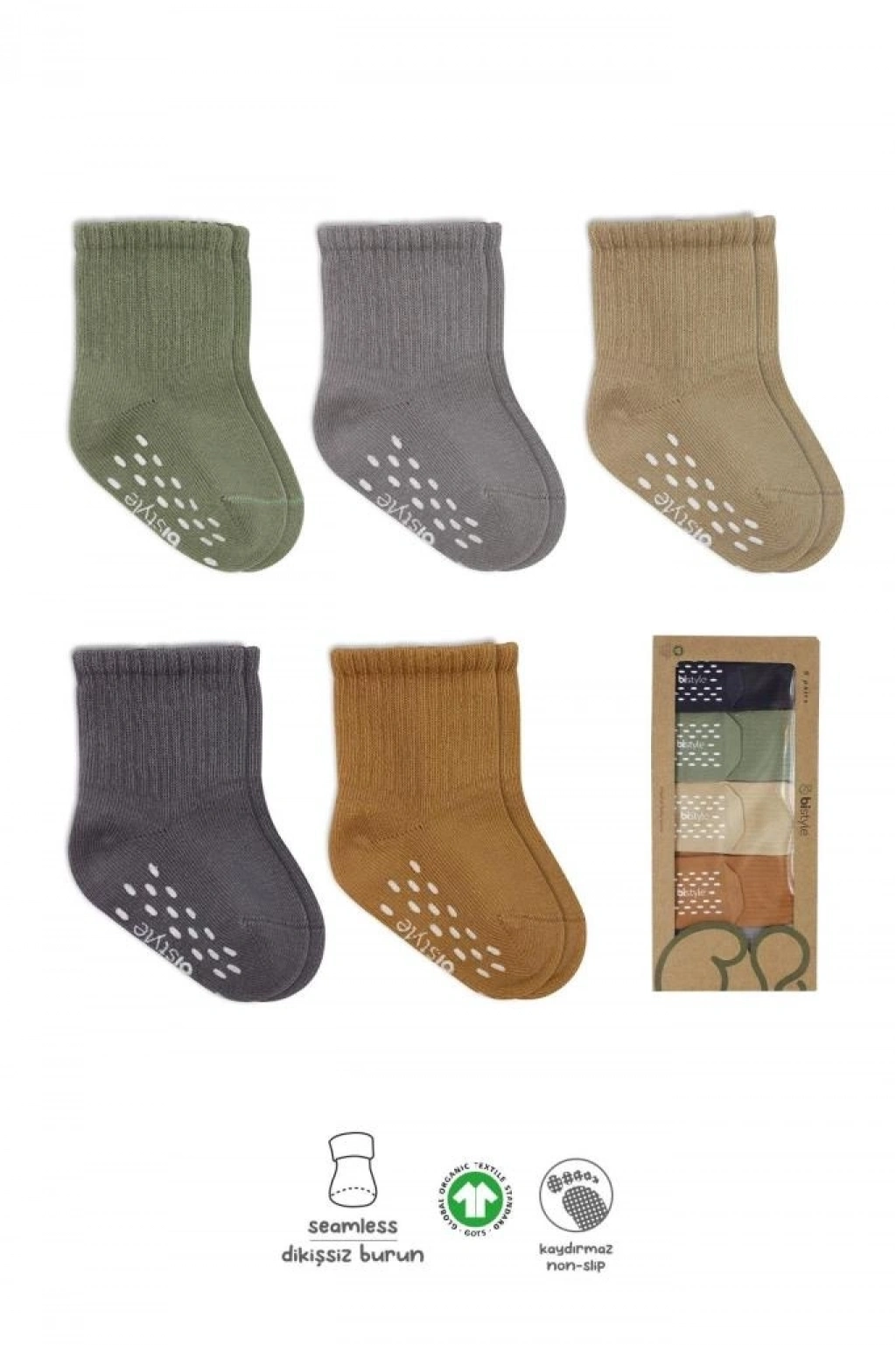® 5'Li Penye Kaymaz Düz Soket Çorap 10121 Yeşil