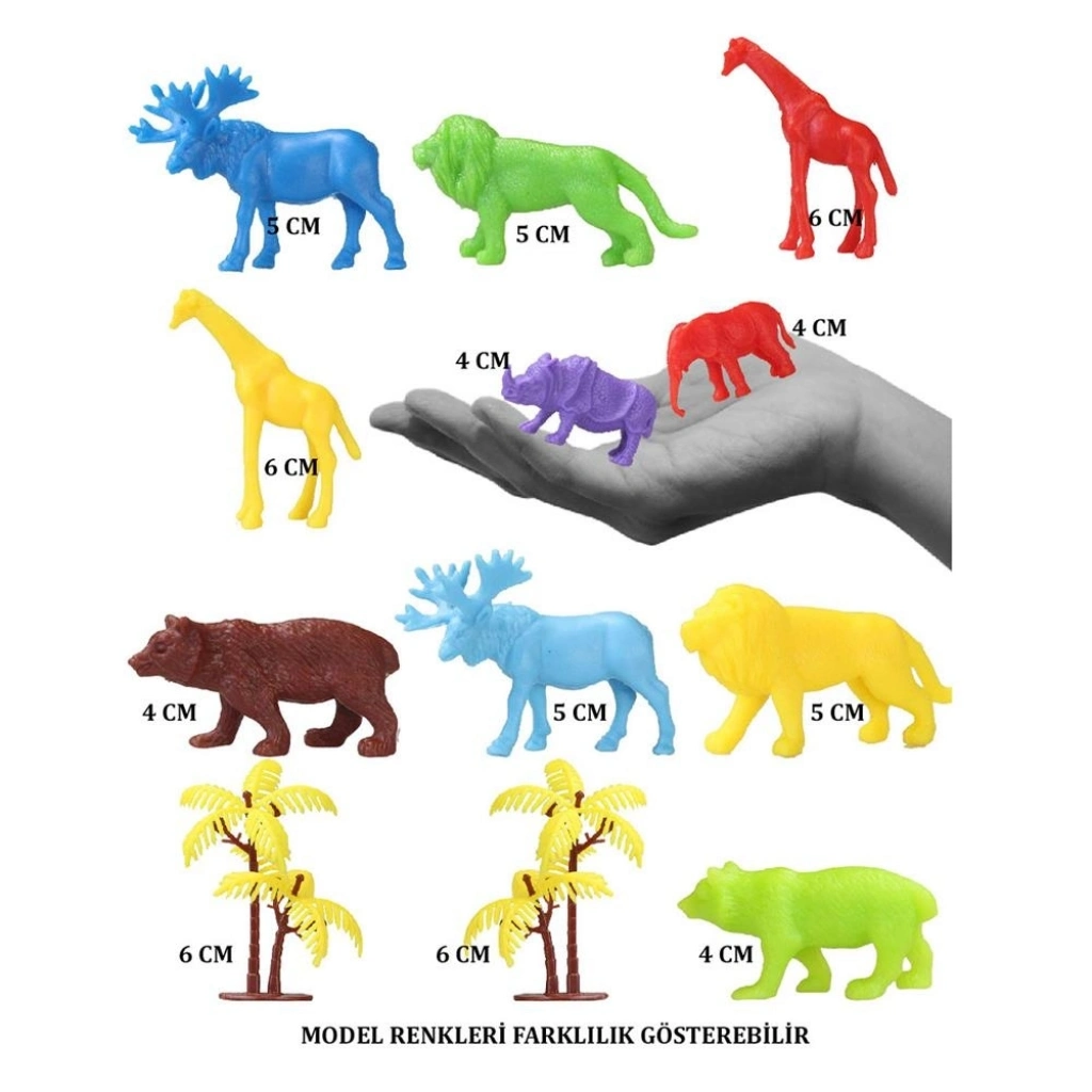 ® 669 Toy Play 12 Parça Renkli Mini Vahşi Hayvanlar Figür Seti 4-6 cm