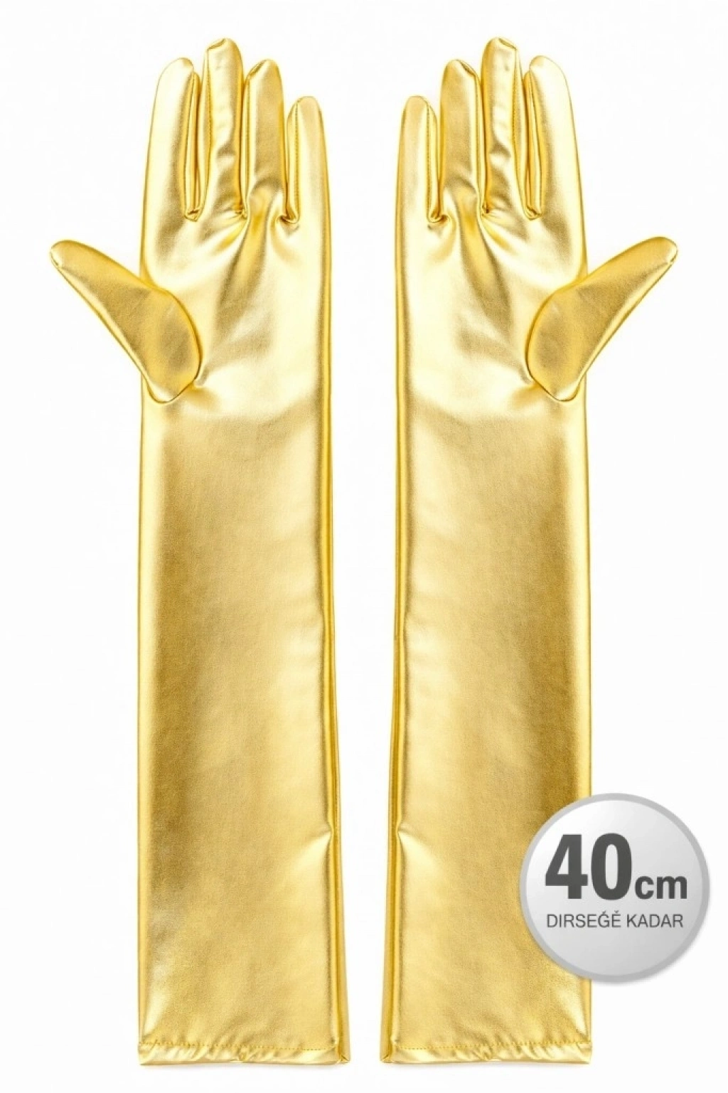 Altın Renk Dirsek Altı Lüks Saten Eldiven 40 cm