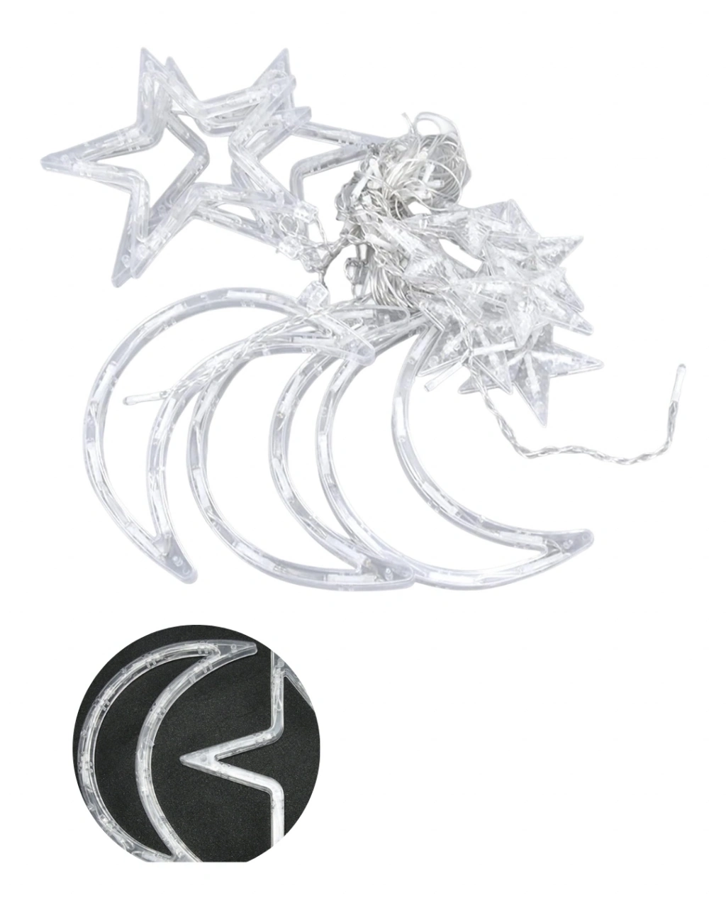 Büyük boy Ramazan ay yıldız LED süs, klasik dini motifleri modern LED teknolojisi ile buluşturan özel tasarım bir dekor ürünüdür. Ay ve yıldız figürünün şeffaf çerçevesi içerisinde yer alan LED ışıklar homojen bir parlaklık sunar. Gece karanlığında etkileyici bir görüntü oluşturur.Ramazan ayında evinizi süslemek, balkonunuzu ışıklandırmak veya iş yerinizin vitrinini zenginleştirmek için ideal bir tercihtir. Özellikle iftar ve sahur zamanlarında ortama huzurlu ve sıcak bir atmosfer kazandırır.Enerji tasarruflu LED yapısı sayesinde uzun süreli kullanımlarda düşük enerji tüketimi sağlar. Dayanıklı gövdesi sayesinde kırılmalara karşı dirençlidir. İç ve dış mekan kullanımına uygundur.Kolay asılabilir tasarımı sayesinde kapı üstü, pencere önü veya duvar dekoru olarak rahatlıkla kullanılabilir. Ramazan dekorasyonu, dini gün süslemeleri ve özel geceler için estetik bir tamamlayıcıdır.