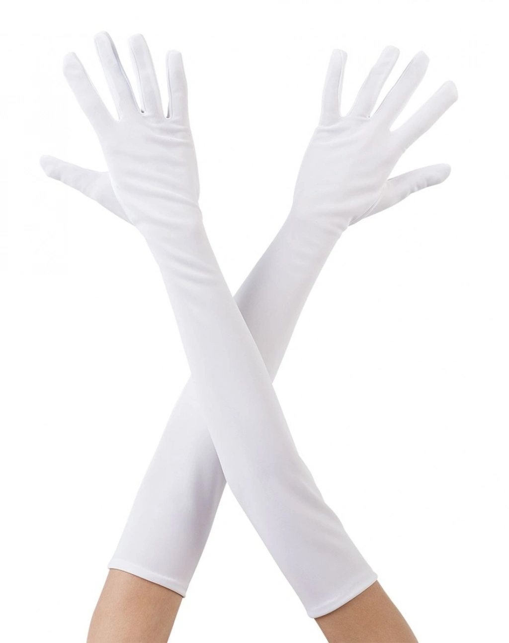 Beyaz Renk Dirseğe Kadar Uzun Kumaş Eldiven 40 cm