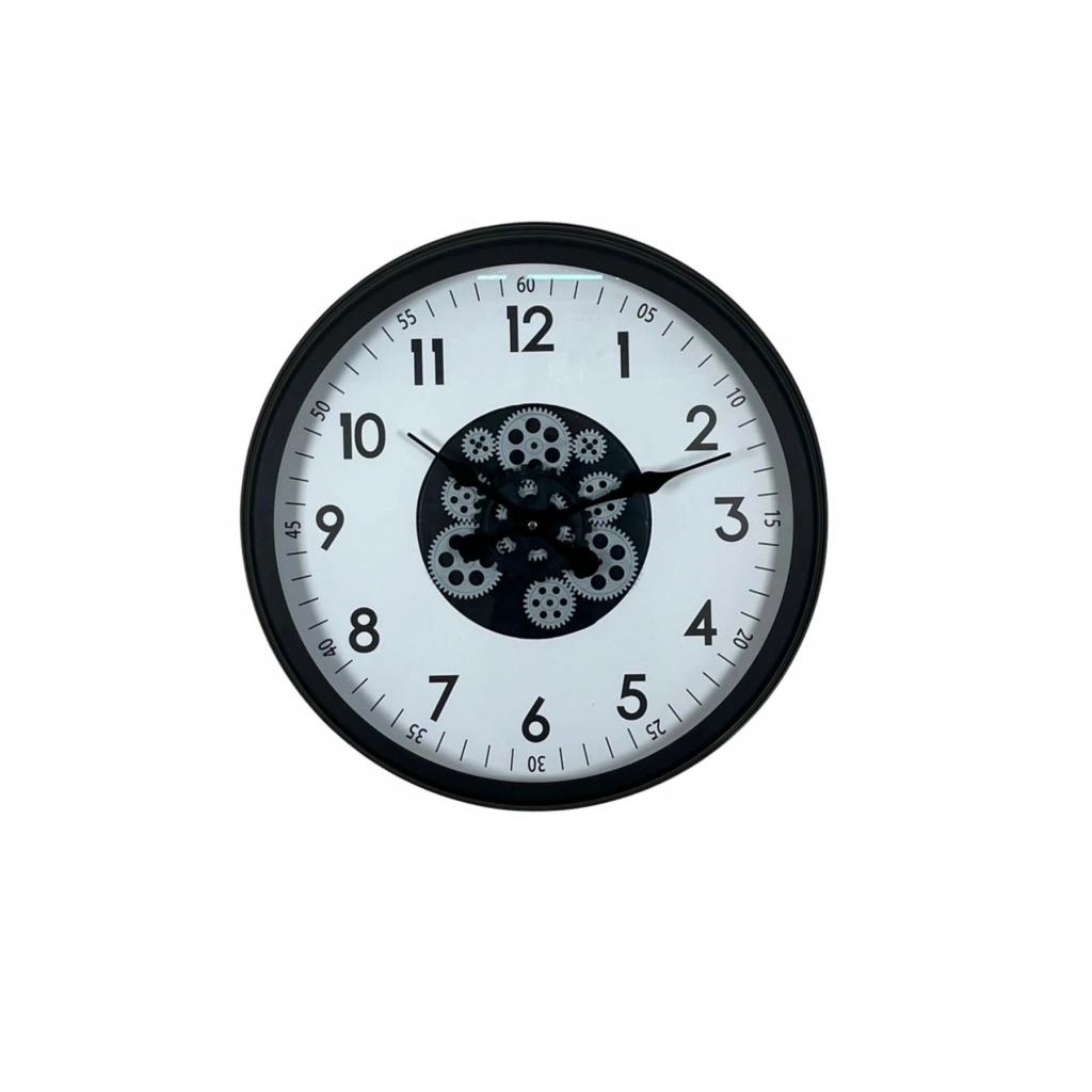Orta bölümde yer alan hareketli çark mekanizması saate dinamik ve dikkat çekici bir görünüm kazandırır. Minimal tasarım ile mekanik detayların birleşimi, ürünü hem modern hem de dekoratif bir odak noktası haline getirir.