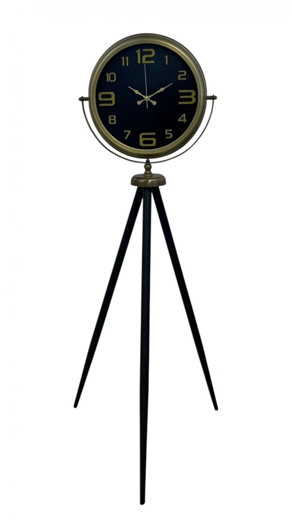 Eskitme (vintage) metal detayları ve tripod ayak tasarımıyla bulunduğu ortama tek başına “dekor objesi” etkisi katan bu özel saat, 150 cm yüksekliğiyle salonlardan lobilere, ofislerden kafe/restoranlara kadar her alanda güçlü bir atmosfer oluşturur. Siyah gövde ve eskitme tonlu çerçeve kombinasyonu sayesinde modern alanlara şık bir kontrast, dekorlara ise güzel bir uyum sağlar.
