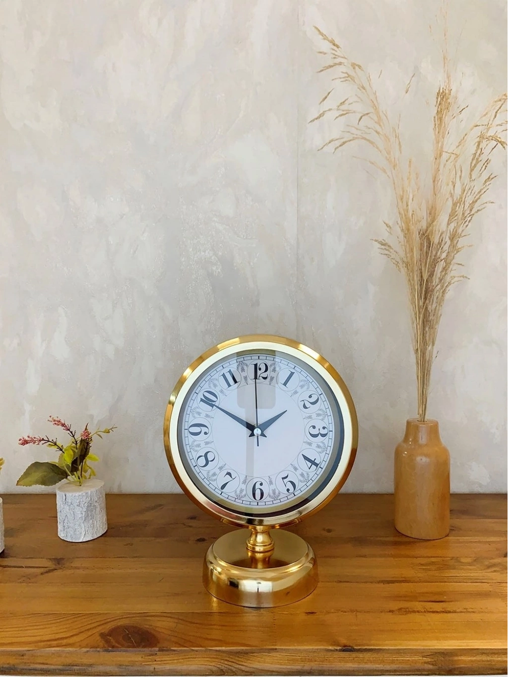 ® Gold Metal Desenli Masa Saati 25×20 cm