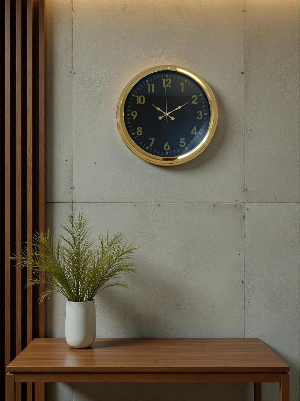 Gold rengin siyah kadranla buluştuğu bu elegan tasarım, bulunduğu mekâna anında değer katar ve dekorasyonunuzu tamamlayan şık bir duvar objesine dönüşür. Hem büyük hem de dikkat çekici olduğu için duvarınızda tek başına bile etkileyici bir dekor ürünü olarak sergilenebilir.