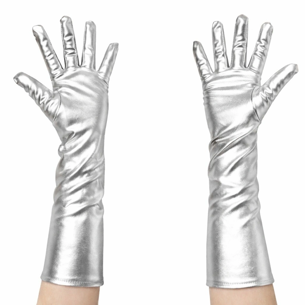Gümüş Renk Dirsek Altı Lüks Saten Eldiven 40 cm