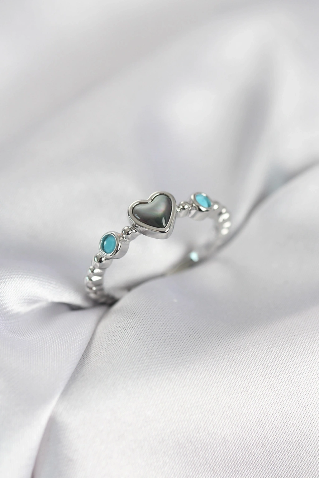 ® Gümüş Renk Hematit Taşlı Kadın Yüzük