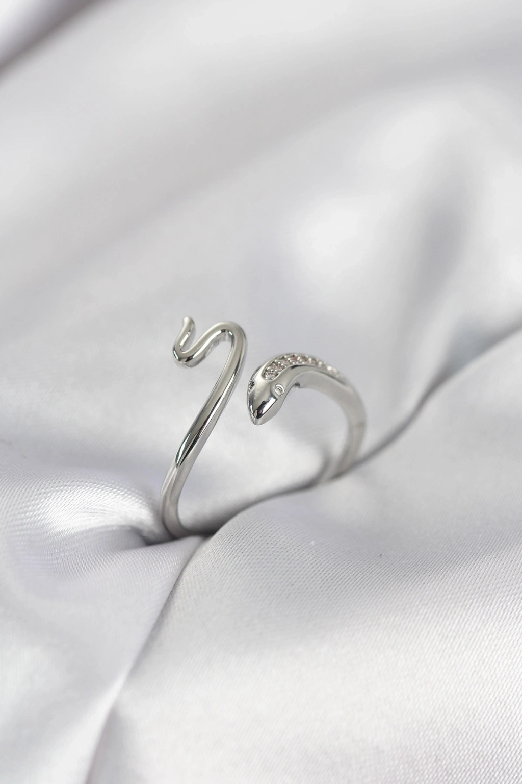 ® Gümüş Renk Yılan Model Zirkon Taşlı Kadın Yüzük