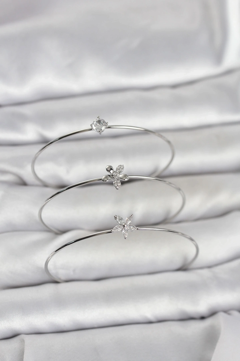 ® Gümüş Renk Zirkon Taşlı Pirinç 3'lü Kadın Bileklik Kombini