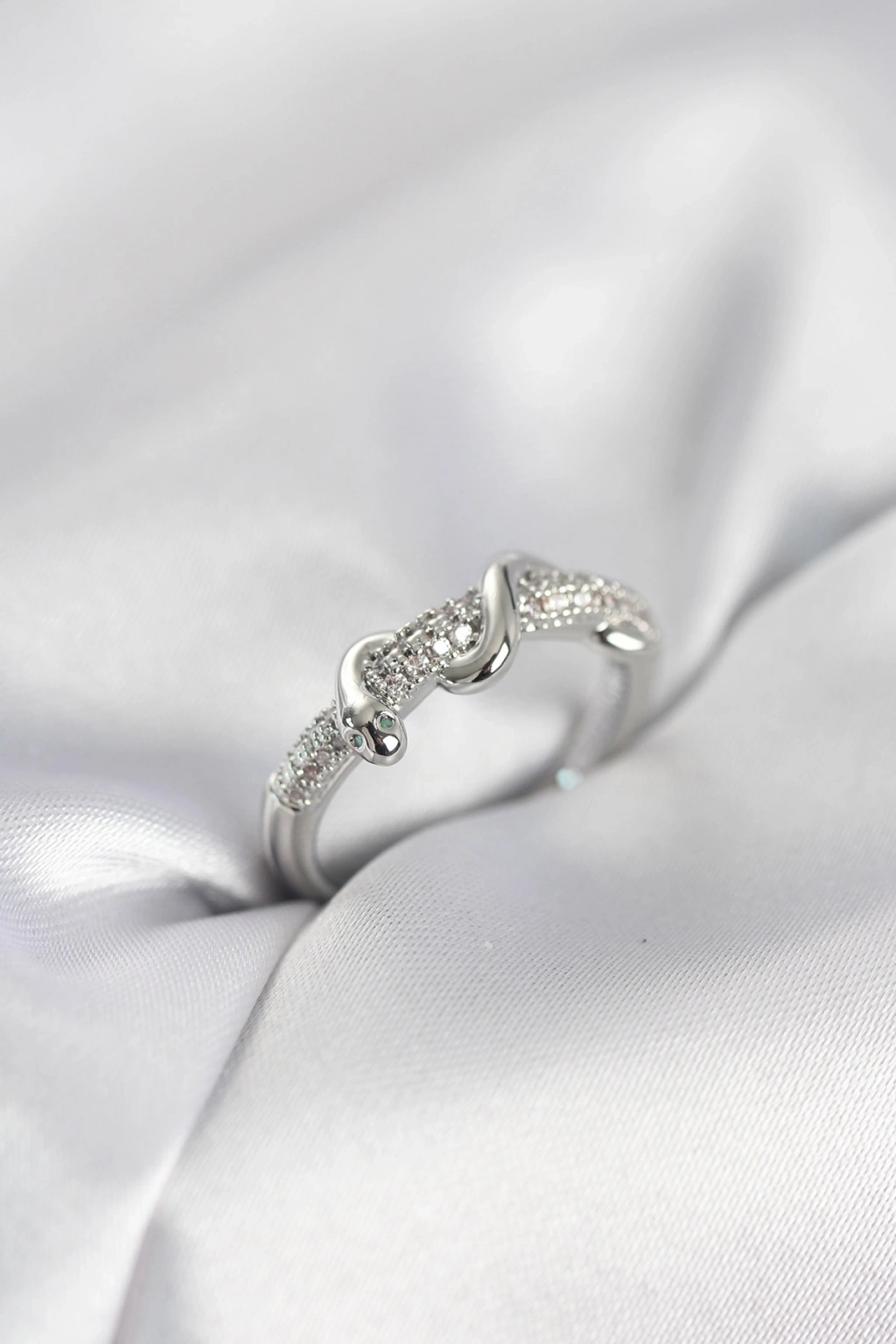 ® Gümüş Renk Zirkon Taşlı Sarmal Yılan Model Kadın Yüzük
