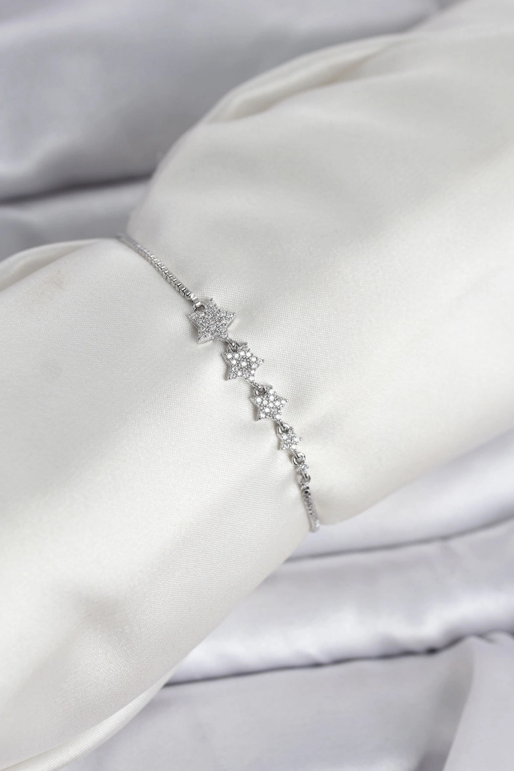 ® Gümüş Renk Zirkon Taşlı Yıldız Model Asansörlü Kadın Bileklik