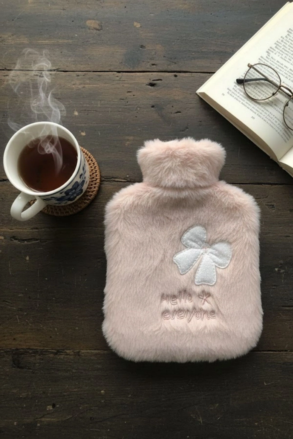 Hello Everyone yazısı ve zarif kurdele detayıyla tasarlanan pembe peluş sıcak su torbası, sevimli görünümü ve yumuşak dokusuyla soğuk günlerde konforlu bir kullanım sunar. 1 litrelik ideal kapasitesi sayesinde uzun süre sıcaklığını koruyarak vücudu nazikçe ısıtır.