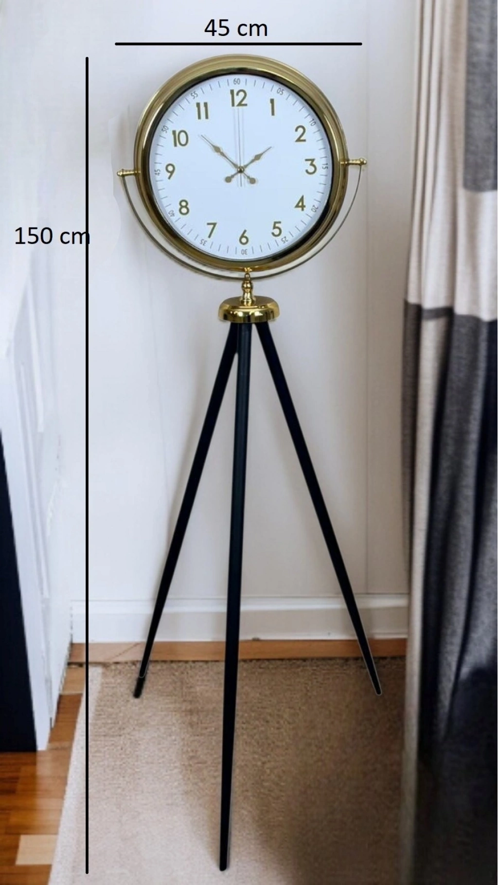 ?️ Gold Tripod Ayaklı Dekoratif Saat – 150 × 45 cm