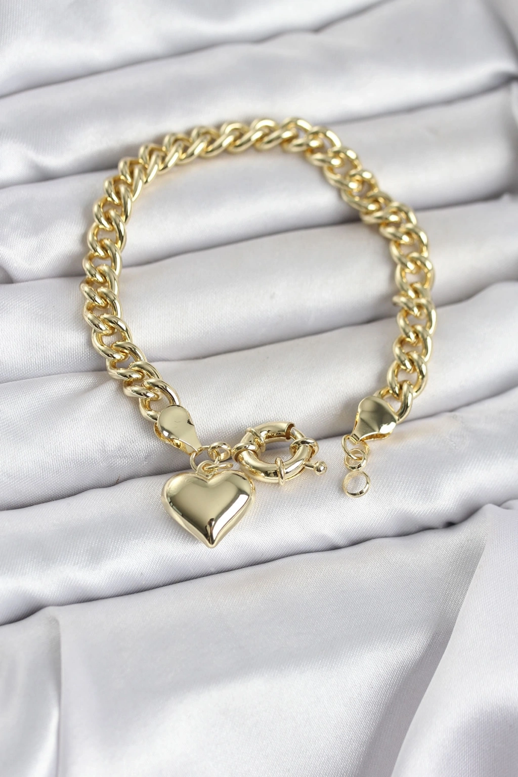® Kalp Detaylı Gold Renk Pirinç Kadın Bileklik