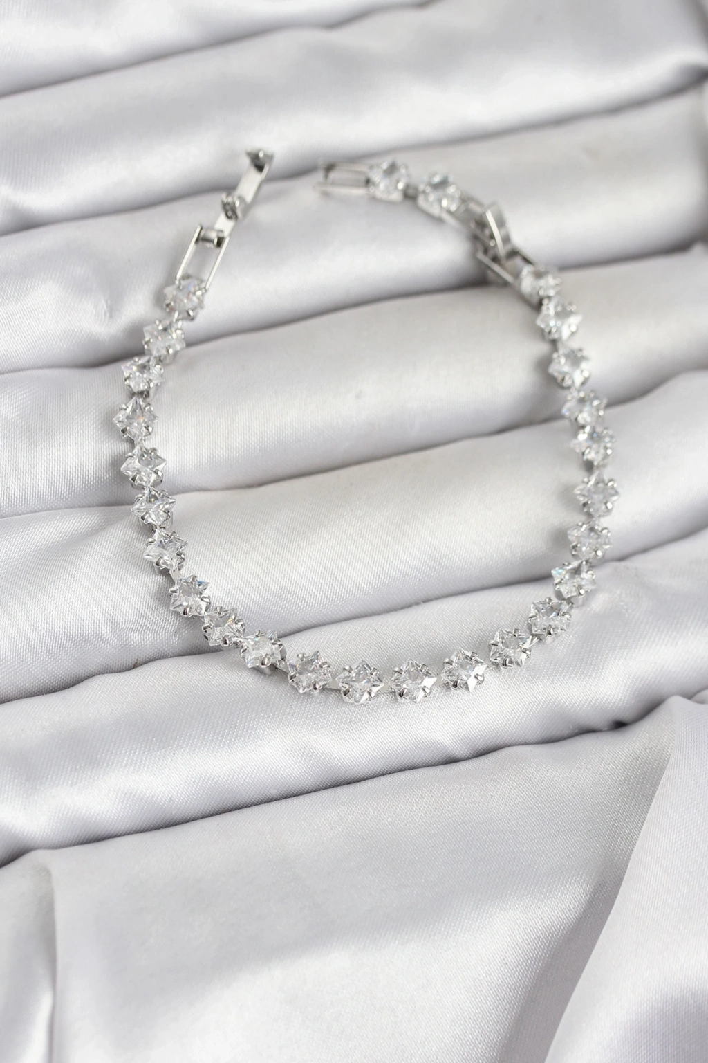 ® Kare Zirkon Taşlı Gümüş Renk Pirinç Su Yolu Kadın Bileklik