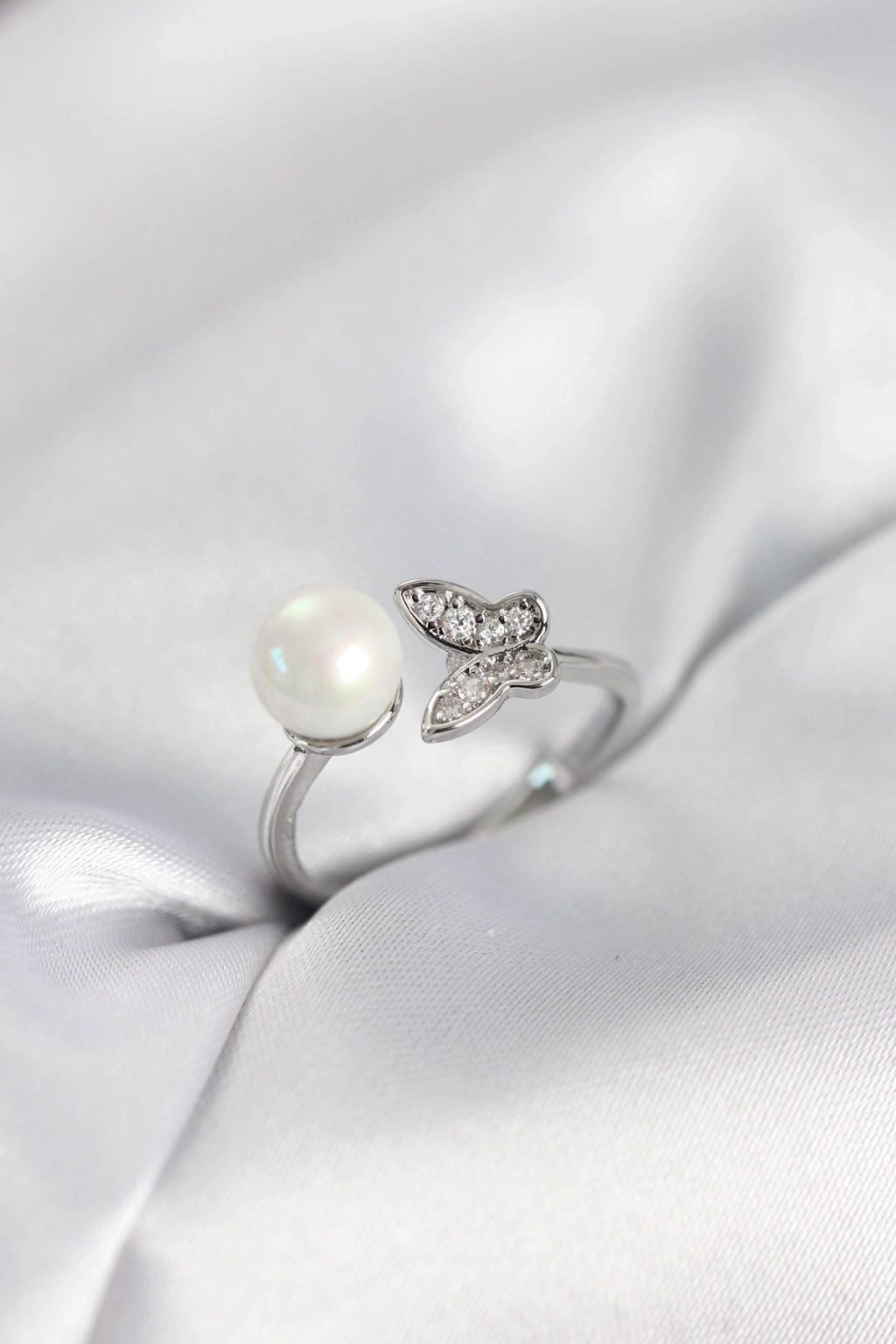 ® Kelebek İncili Model Gümüş Renk Zirkon Taşlı Kadın Yüzük