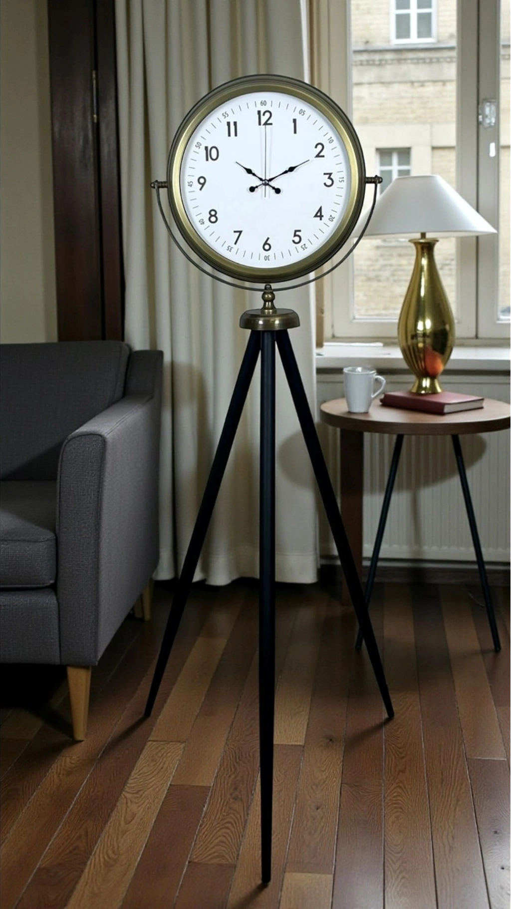 Tripod (üç ayaklı) yapısı sayesinde duvar montajına ihtiyaç duymaz. Dilediğiniz alana kolayca yerleştirilebilir ve taşınabilir. Salon köşeleri, ofisler, giriş holleri, otel lobileri, kafe ve restoranlar için dekoratif bir tamamlayıcıdır. Büyük boy yapısı sayesinde yalnızca bir saat değil, aynı zamanda mekânın odak noktası olan dekoratif bir obje görevi görür.