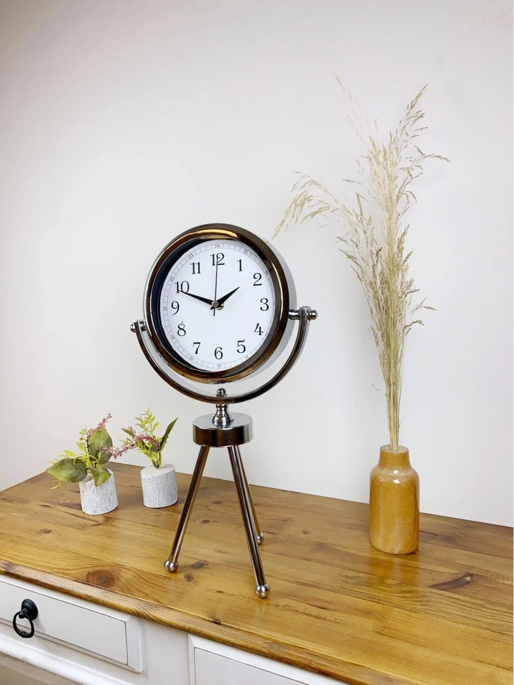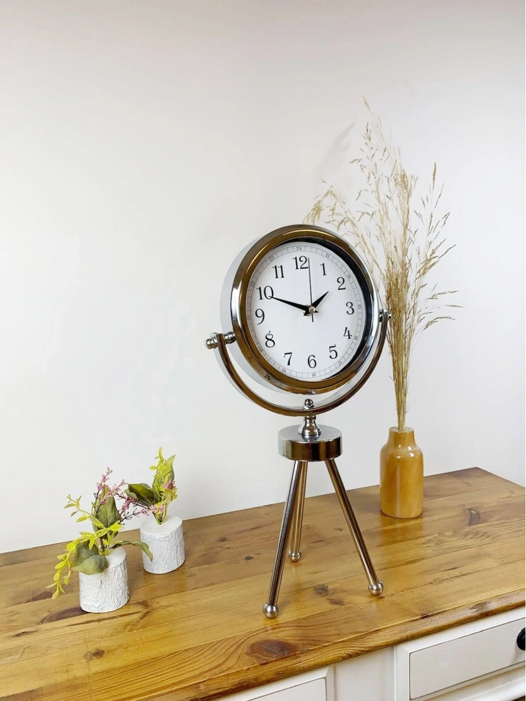 ® Krom Metal Mini Tripod Dekoratif Masa Saati 45×26 cm