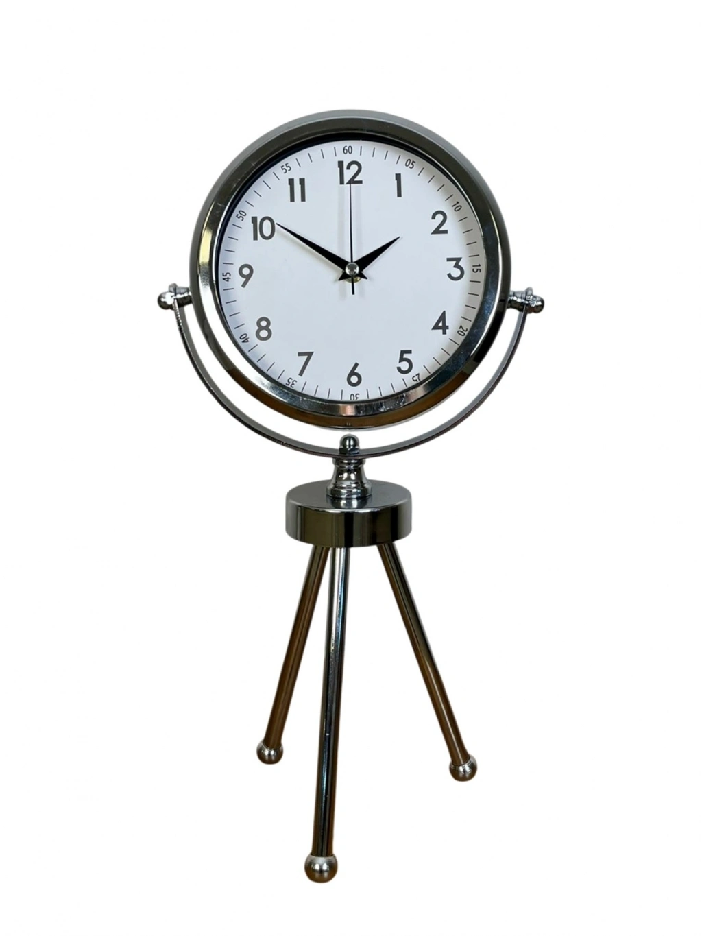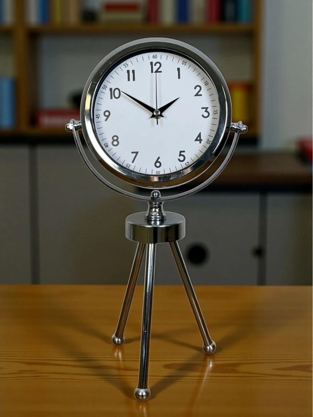 ® Krom Modern Classic Üç Ayaklı Metal Masa Saati