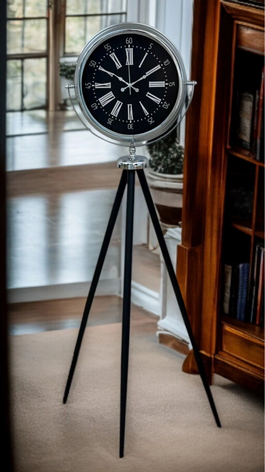 ?️ Krom Tripod Ayaklı Saat – 150 × 45 cm