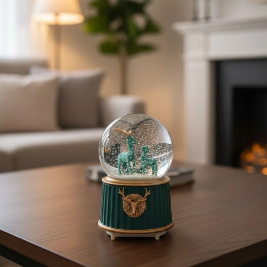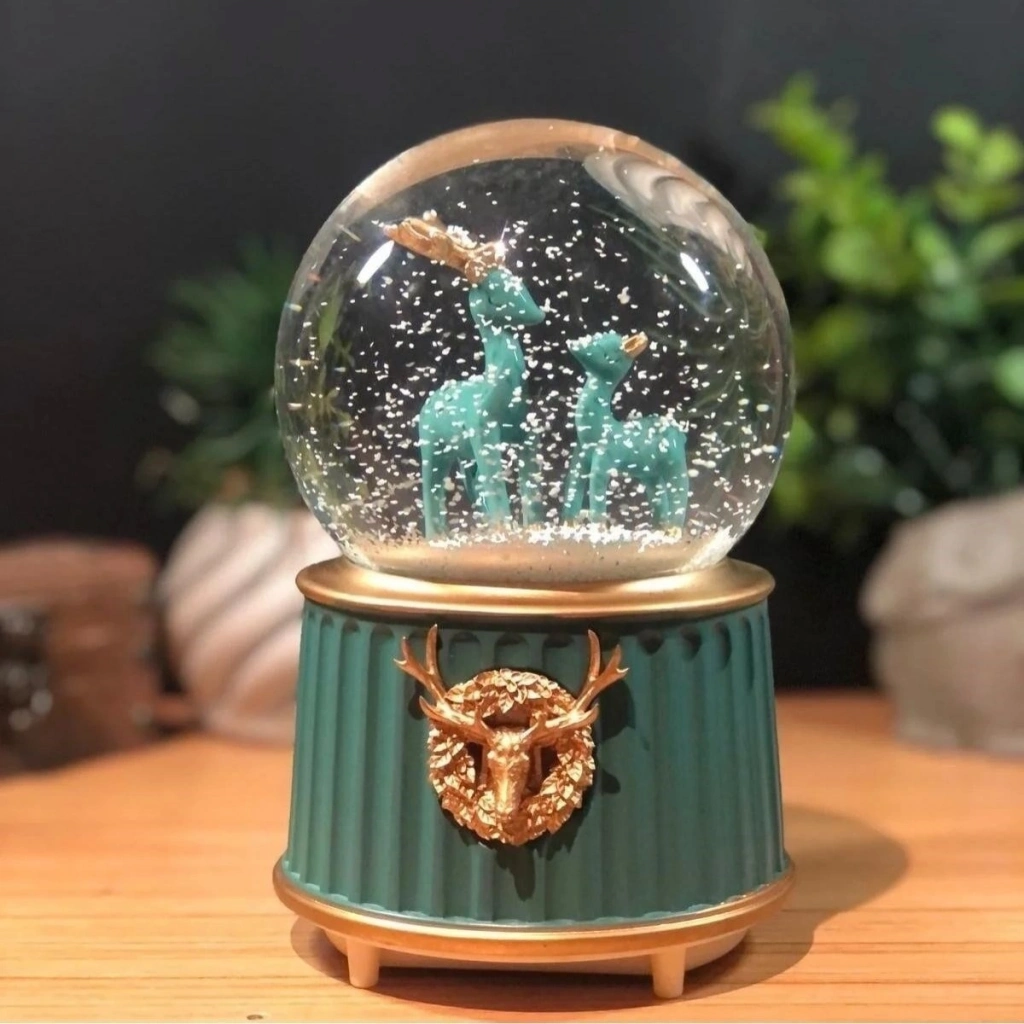 , estetik tasarım, kaliteli işçilik ve kullanıcı dostu detayları bir araya getirerek yaşam alanlarınıza değer katan dekoratif ürünler sunar. İki geyikli yeşil figürlü bu özel kar küresi, kışın ve yılbaşının büyüsünü dekorasyonunuza taşımanın en şık yollarından biridir.