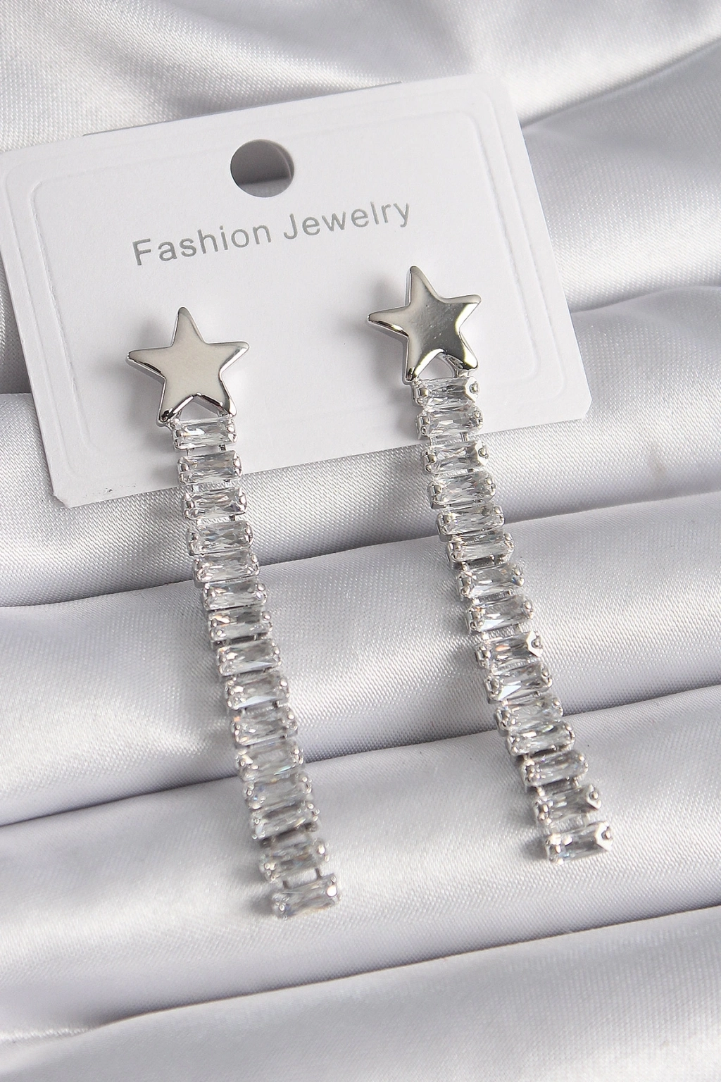 ® Pirinç Gümüş Renk Yıldız Model Su Yolu Zirkon Taş Kadın Küpe