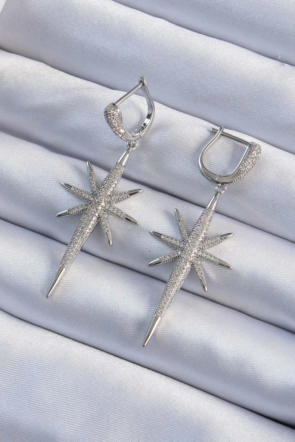 ® Pirinç Gümüş Renk Zirkon Taş Kaplama Kutup Yıldızı Tasarımlı Kadın Küpe