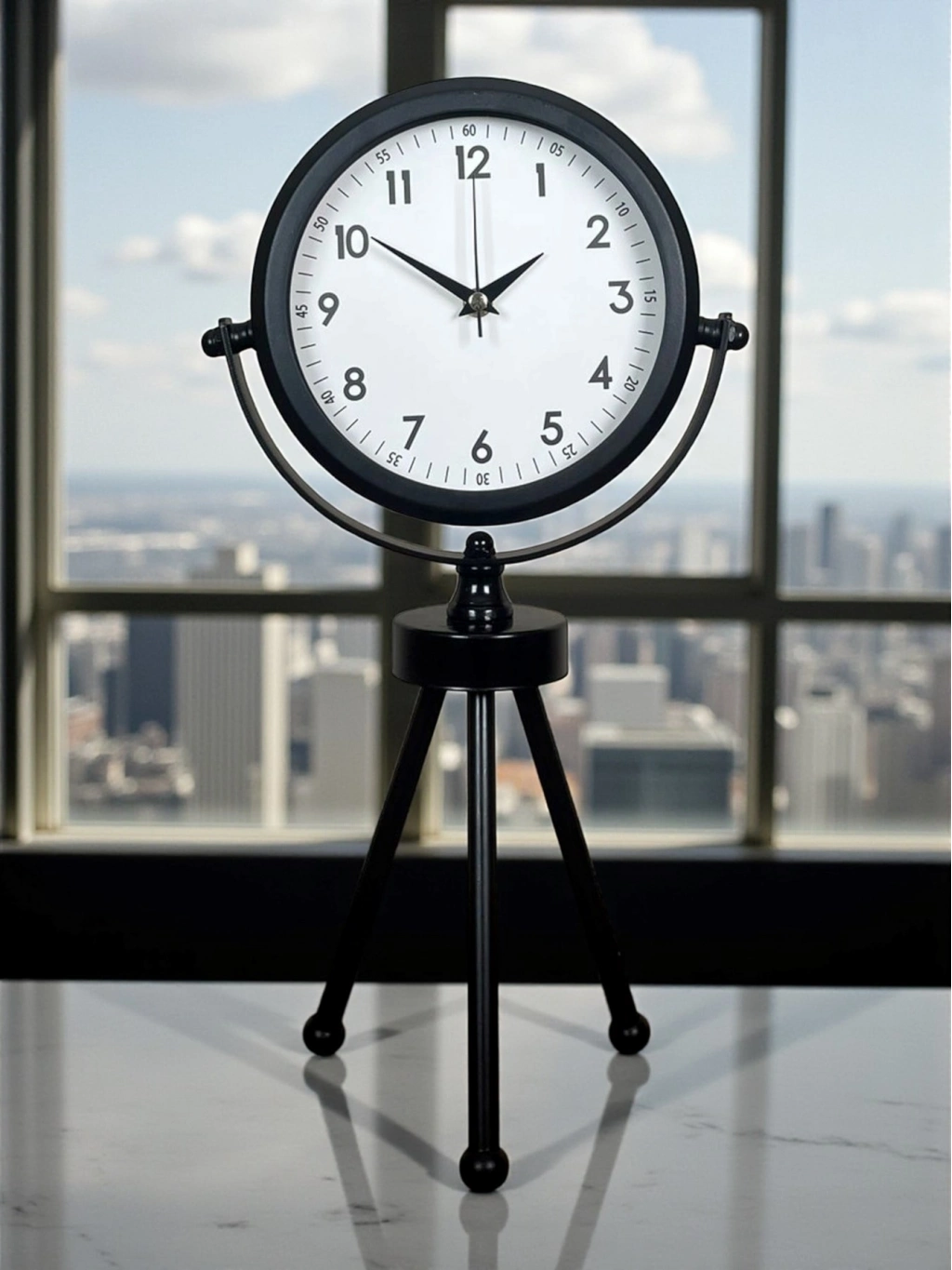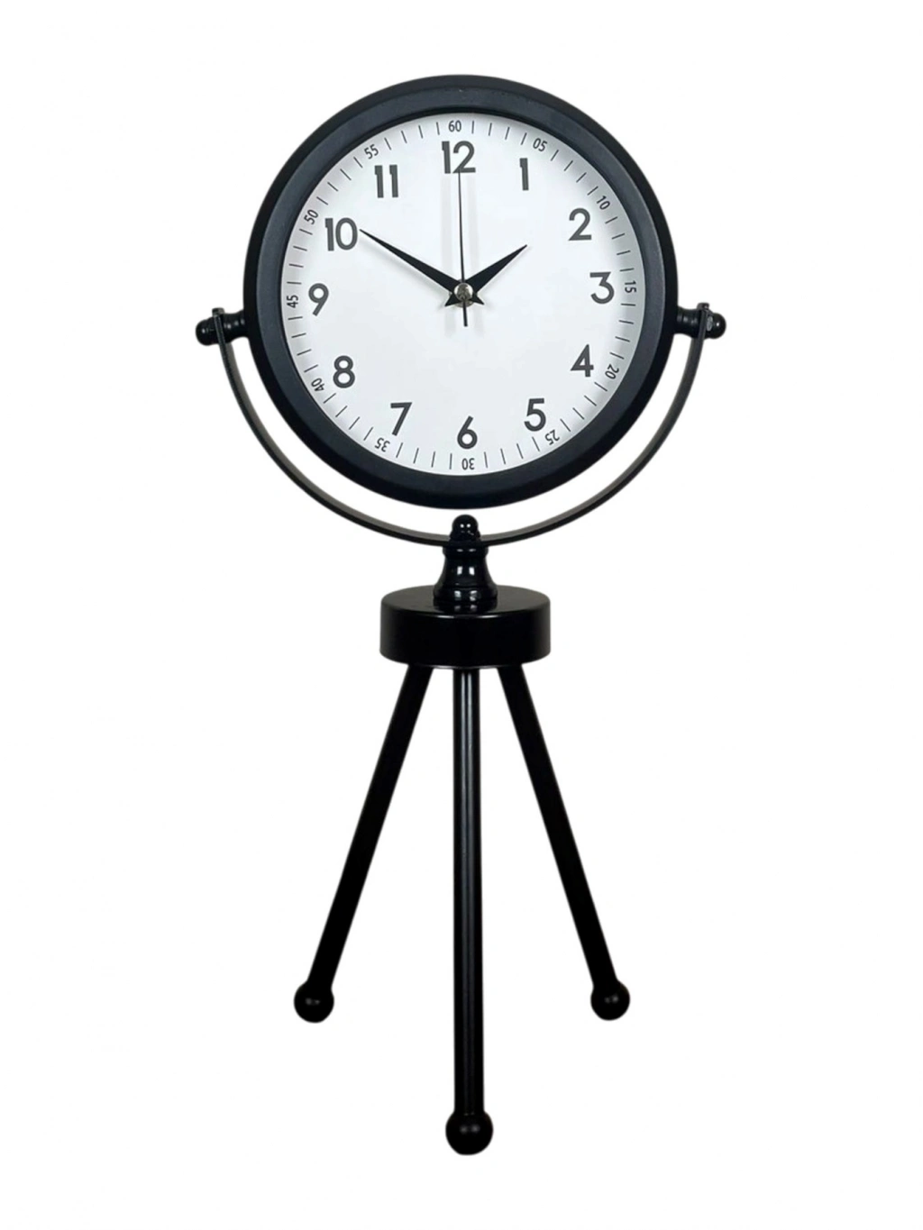45 x 25 cm ölçülerindeki bu modern siyah üç ayaklı masa saati, minimal tasarımı ve güçlü duruşuyla her ortama şıklık katar. Gerçek cam korumalı kadranı sayesinde net görüntü ve uzun ömürlü kullanım sağlar. Tamamen metal gövdesi ve tripod ayak yapısıyla sağlam, dekoratif ve premium bir görünüm sunar. Sessiz akar saniye mekanizmasıyla ev, ofis ve çalışma alanlarında rahatsızlık vermeden kullanılabilir.