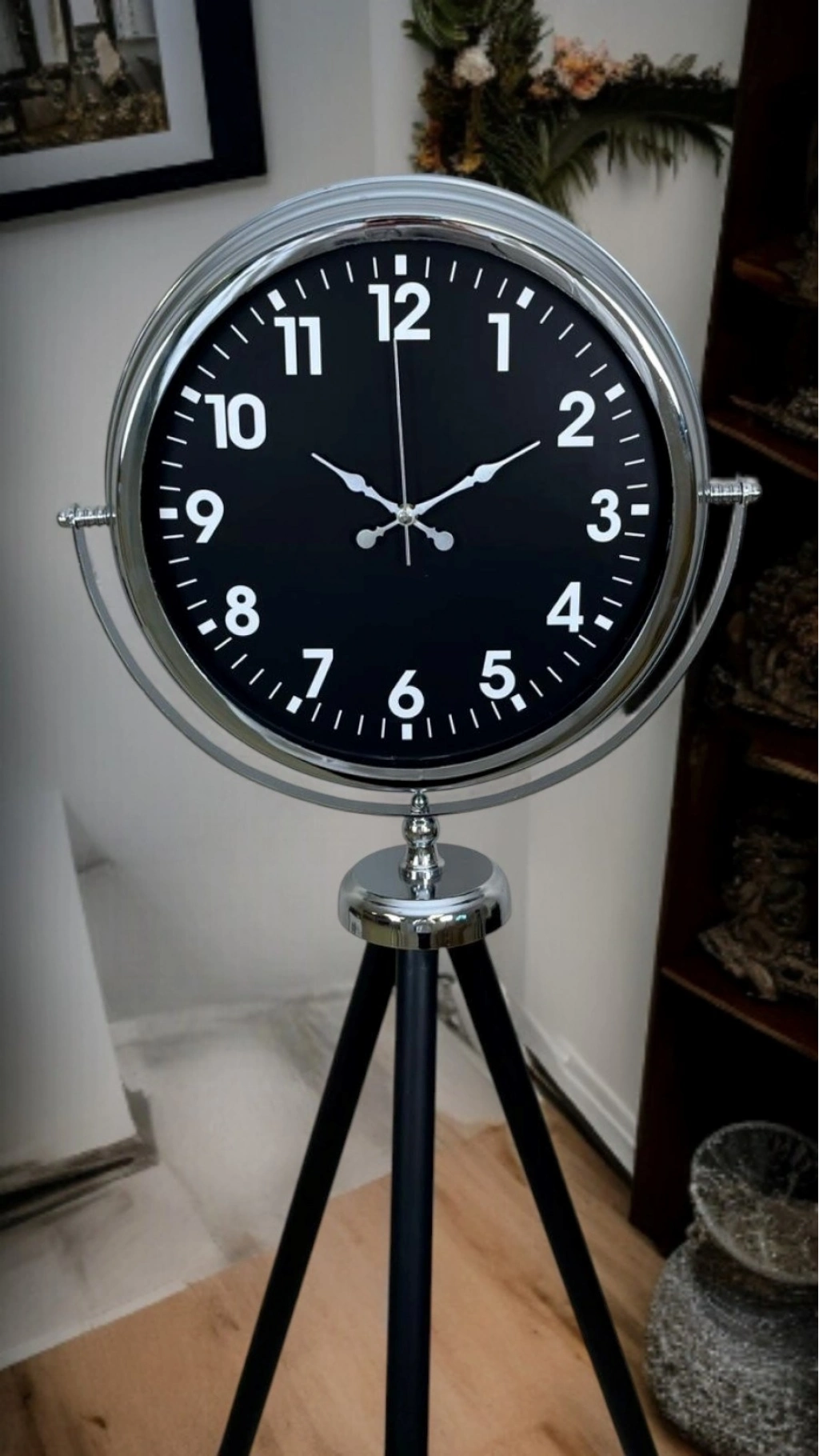 ⏱️ Krom Tripod Ayaklı Dekoratif Saat – 150 × 45 cm (Siyah Kadran)