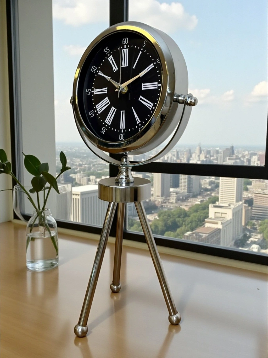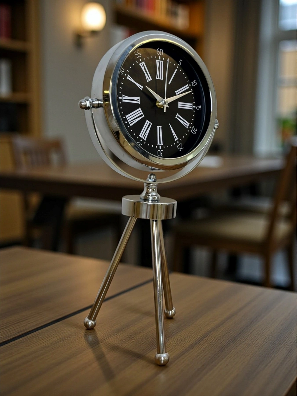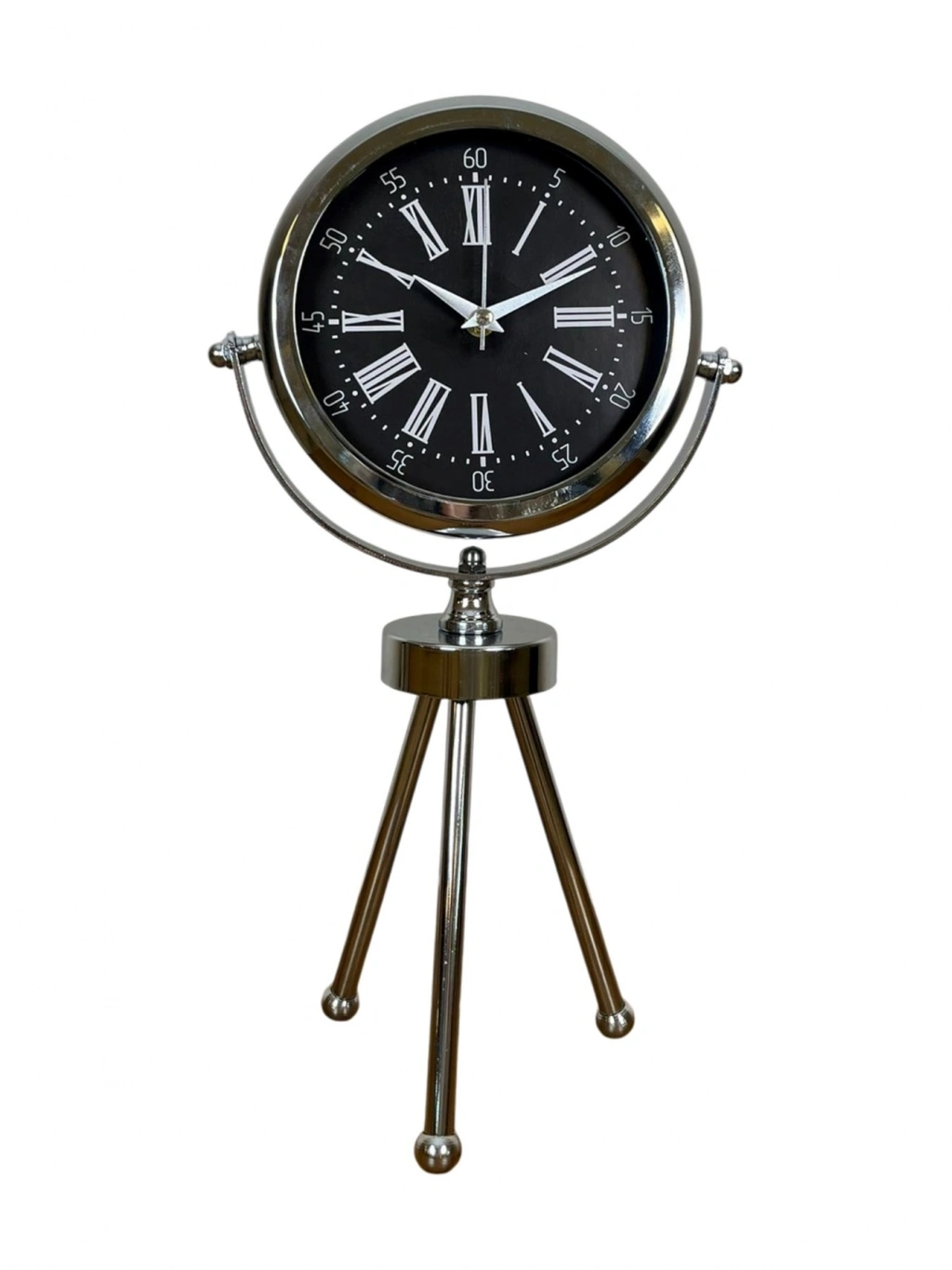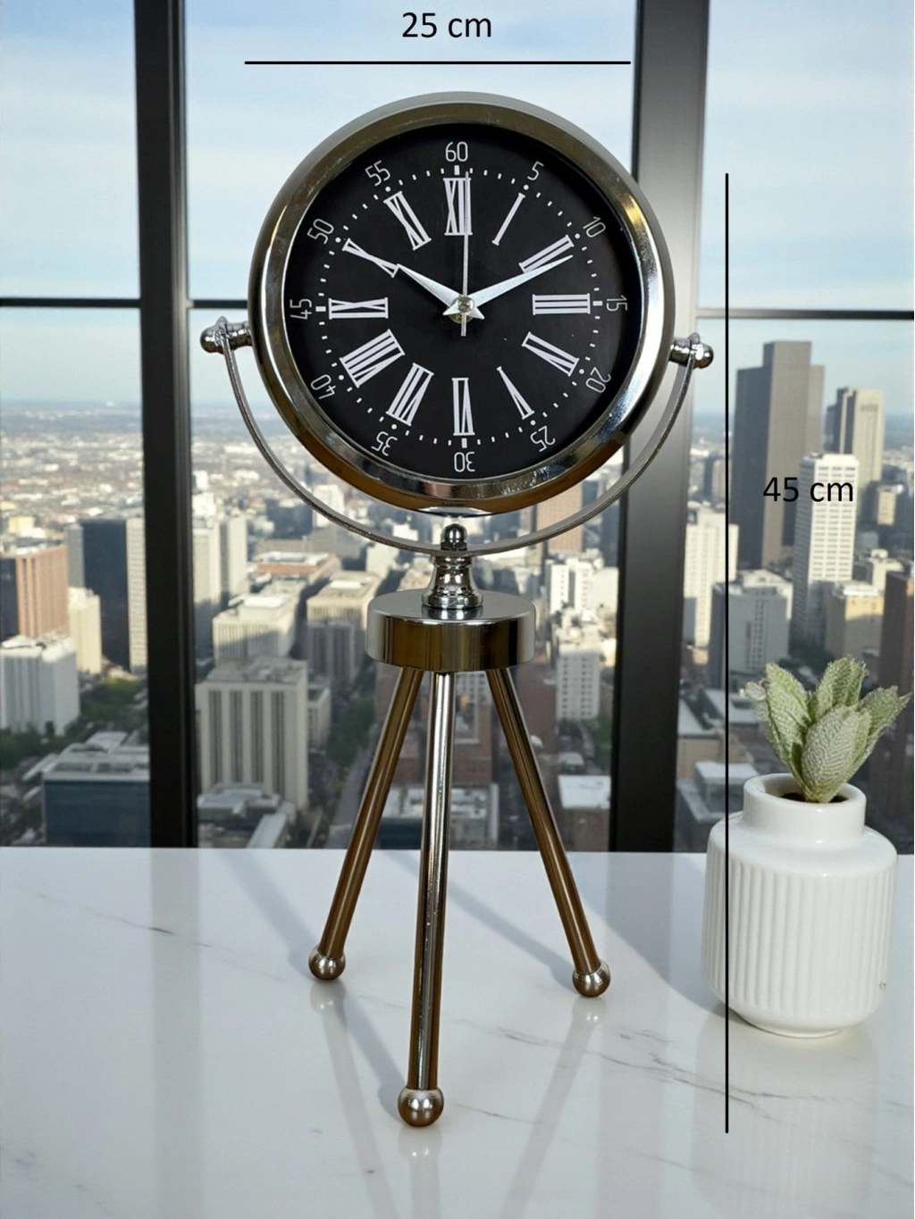 ® Prime Krom Üç Ayaklı Metal Masa Saati