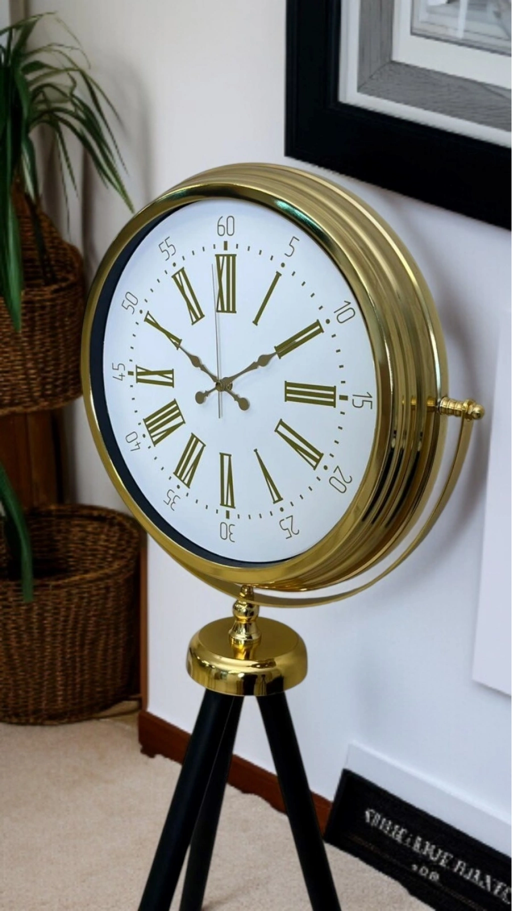 Klasik tasarımın modern çizgilerle buluştuğu bu gold tripod ayaklı saat, bulunduğu mekâna ilk bakışta şıklık ve prestij katar. Altın renkli metal gövdesi, siyah tripod ayakları ve beyaz kadranı ile hem zamansız hem de dekoratif bir duruş sunar. Salon, ofis, antre, lobi ve butik mekânlar için güçlü bir odak noktasıdır.