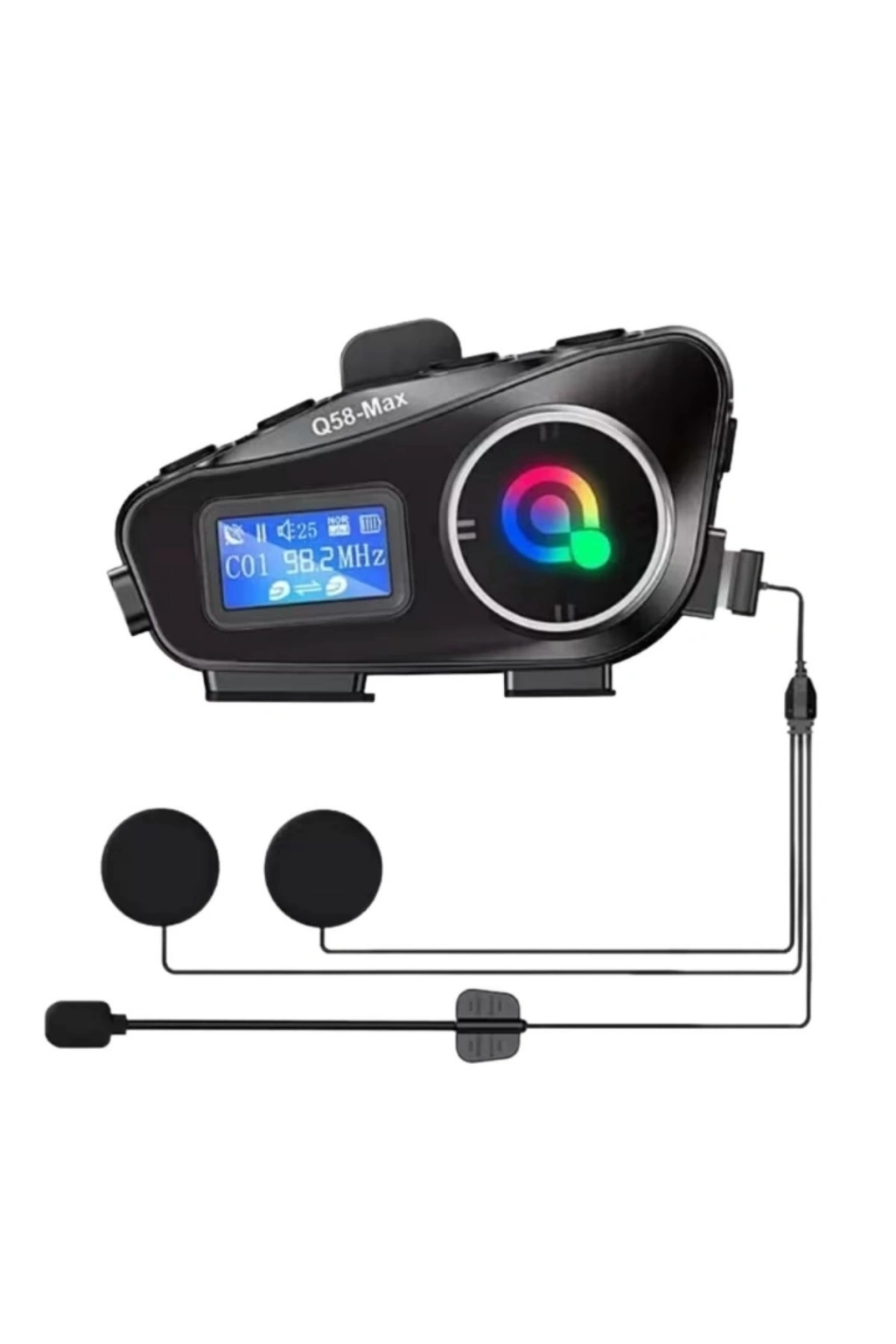 ® Q58 Motorsikletler İçin Fener Özellikli SD Kart Bölümlü LCD Ekranlı Kablosuz Bluetooth Kulaklıklı – Suya Dayanıklı Kask Kulaklığı